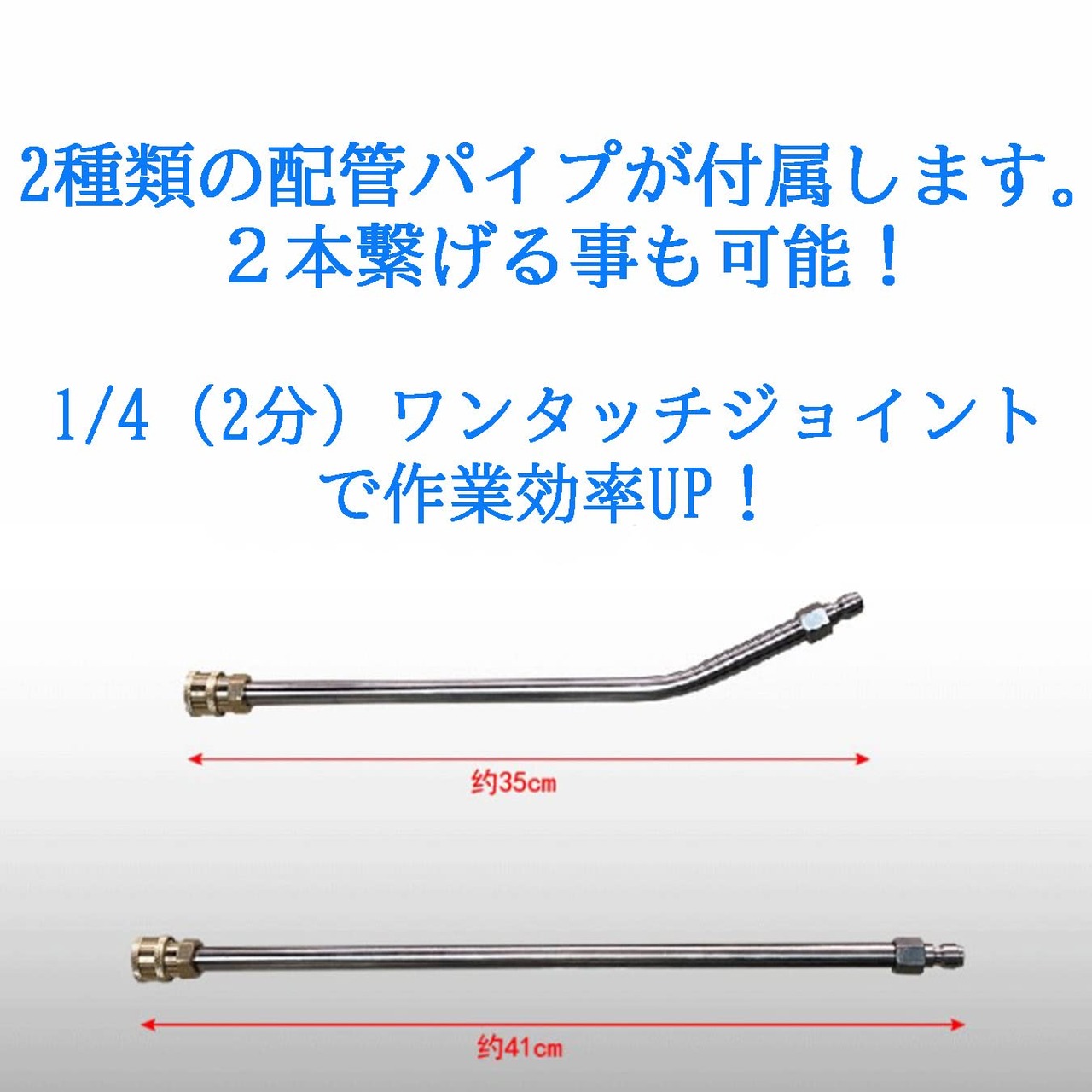 自動車の足廻りや下廻りの泥や塩、雪、油などを清掃するのに最適です。市販の高圧洗浄機み繋いで簡単に使用できます。方向を変えれば下向きにも噴射できるので清掃後に地面を噴射して綺麗にできます。