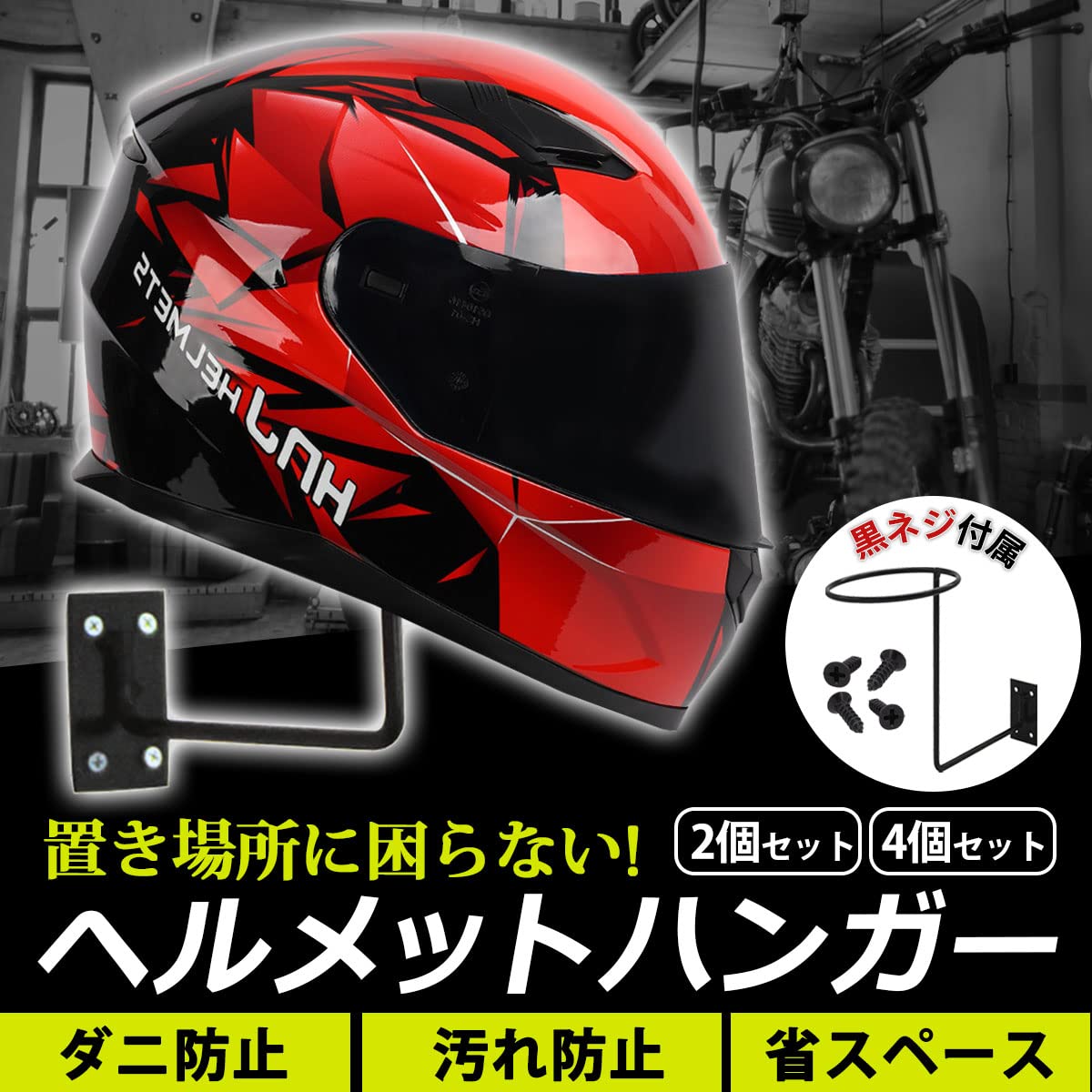アイリー TaJiMy ヘルメットハンガー バイク 壁掛け ヘルメットホルダー ヘルメット掛け ヘルメット フルフェイス ブラック 2個セット