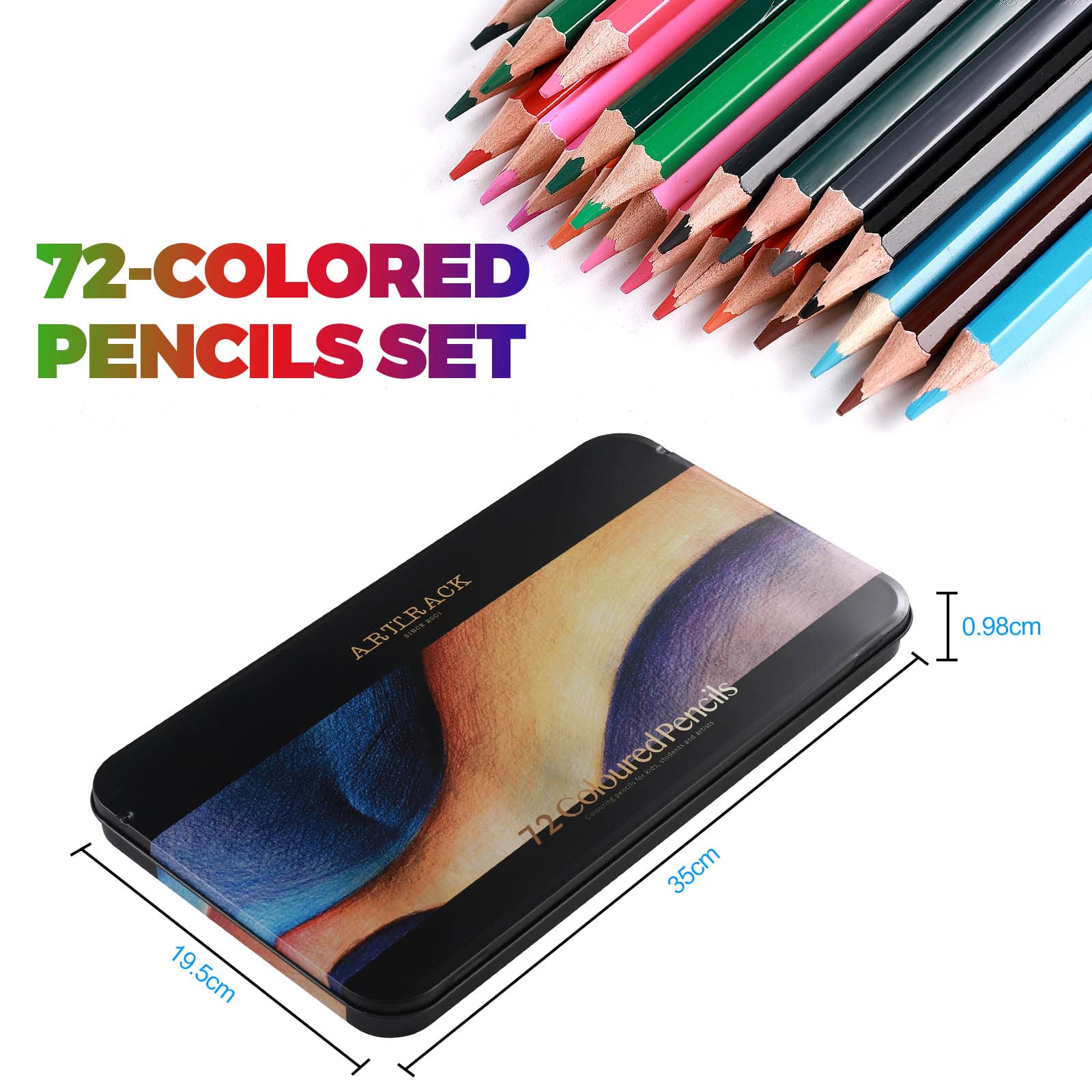 【72色鉛筆セットサイズ】-すべての鉛筆は長さ17.5cm,収納ボックスサイズ:35 x 19.5 x 0.98cm , 持ち運びとても便利です。油性の色鉛筆は、大人の着色、描画、スケッチに非常に適しています。