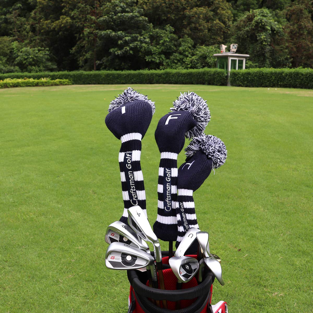 Craftsman(クラフトマン) ゴルフクラブヘッドカバー 単品 ドライバーカバー#1 フェアウェイウッドカバー#F(3、4、5、7、X) ユティリティーカバー #H(2、3、4、5、6、UT) ニット ポンポン 紺・白