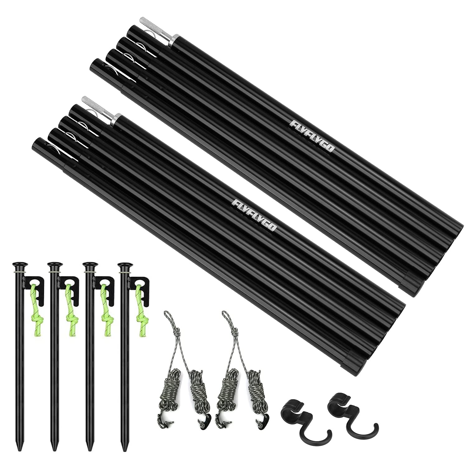 FLYFLYGO アルミテントポール タープポール 2本セット入り 直径19mm 分割式 ジュラルミン ソロキャンプ サブポール ツーリング コンパクト 収納ケース付き