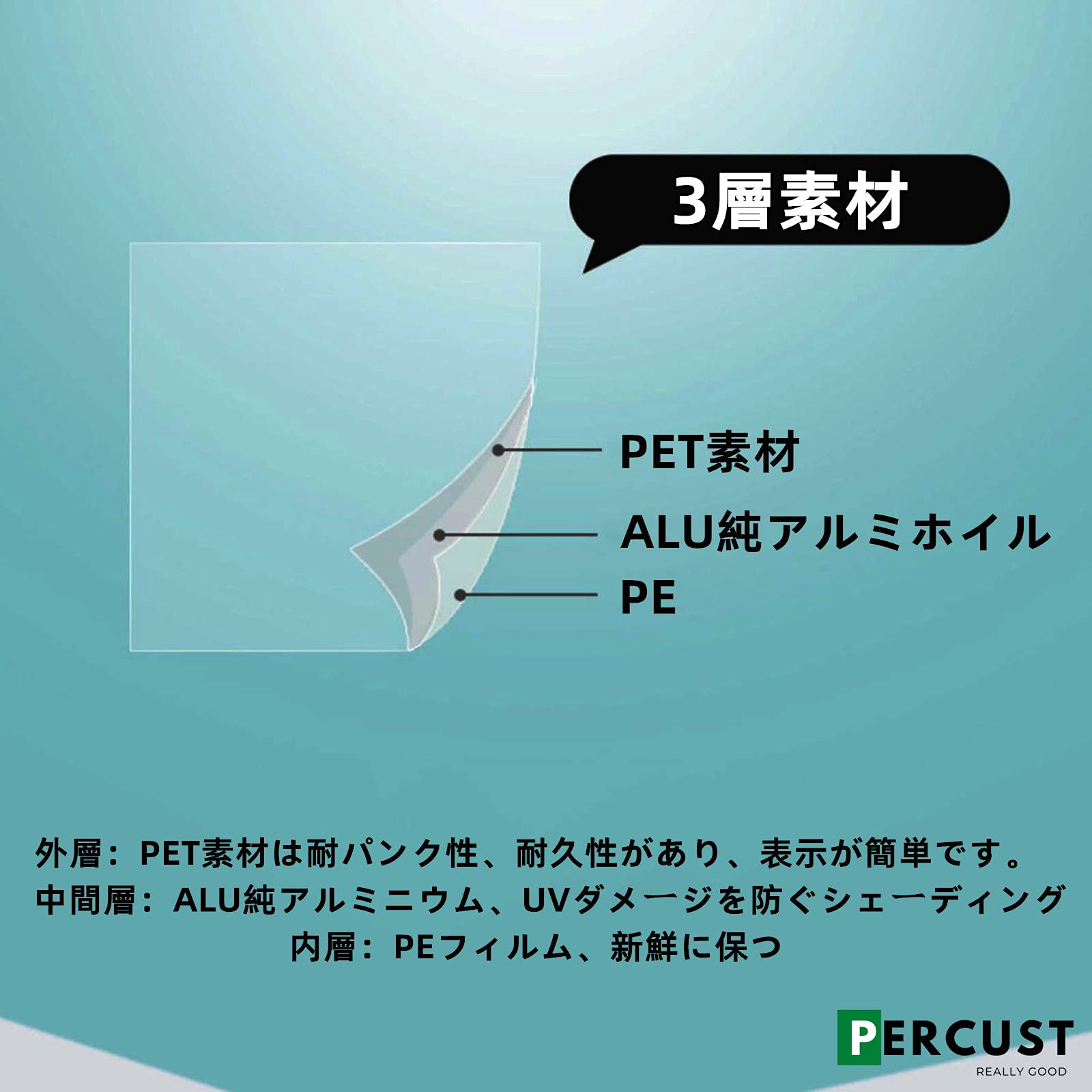 サイズと数量:30枚入 外寸:13x18cm 真空パックが可能な ジッパー付き 袋、両面0.24mm厚、自立アルミホイル底、再利用可能ジッパーコーヒーバッグ。あるマチ付き スタンディングタイプのアルミ保管袋です。