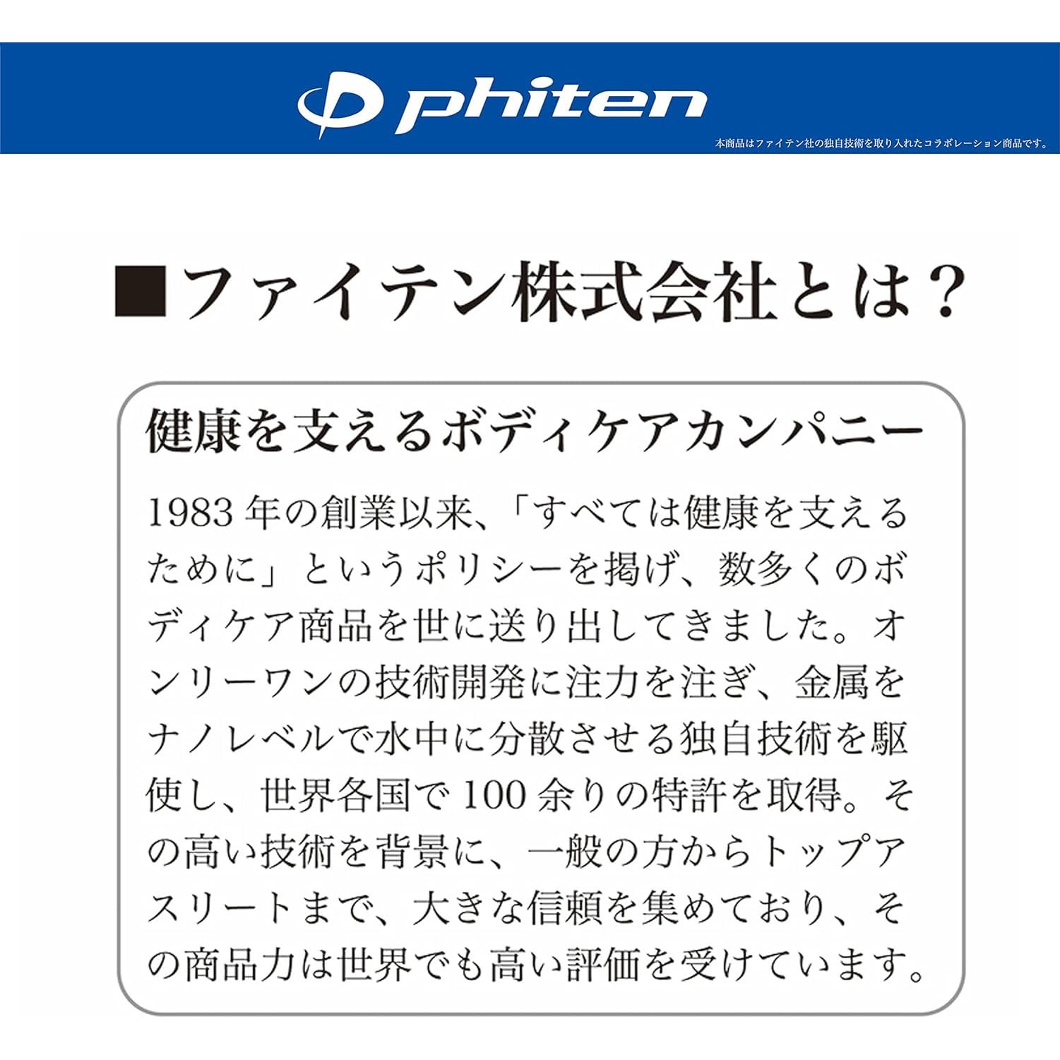 本製品はファイテン社の水溶化メタル技術(アクアチタン)を使用して開発されています