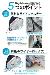 【防水サイドジッパーで利便性がアップ】 サイドジッパーで着脱が簡単になりました。 さらに、鍵の掛け忘れや、電動自転車のバッテリーの取外しも 自転車カバーを着脱する手間は不要です。
