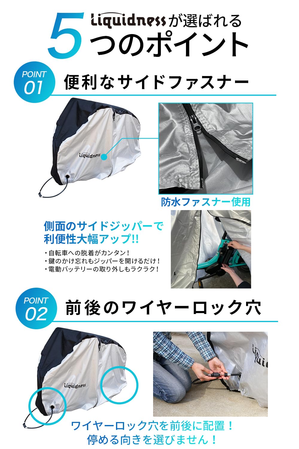Liquidness ハイバック 自転車カバー サイクルカバー メーカー 超厚手 270D 防水 破れにくい 防犯 防風 防塵 UVカット ファスナー 子供乗せ こども乗せ