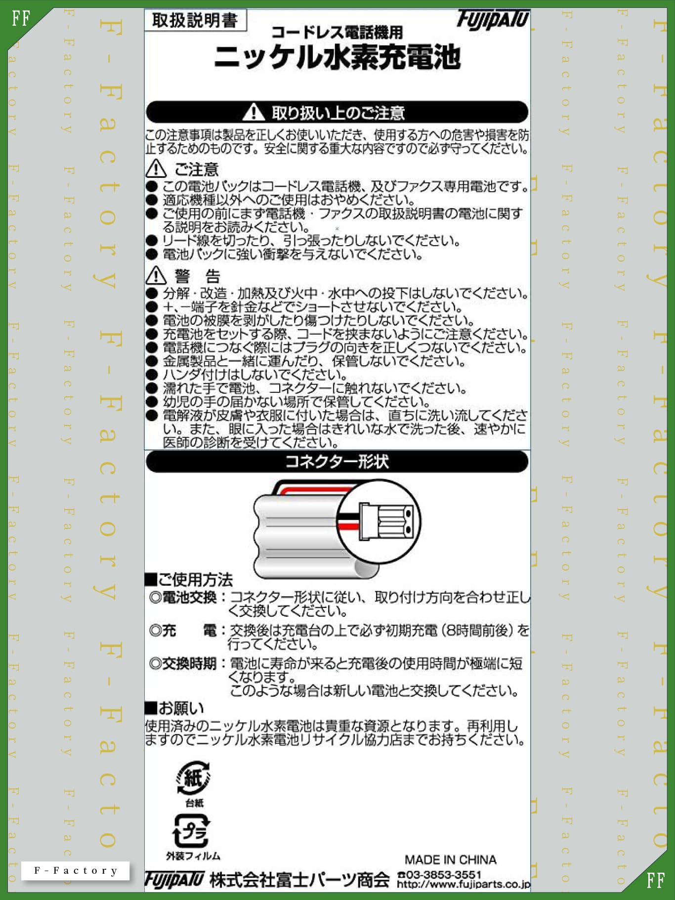 F-Factory スレンダートーン エボリューション (SLENDERTONE EVOLUTION) 対応互換充電池 電池パック FMB-TL15d