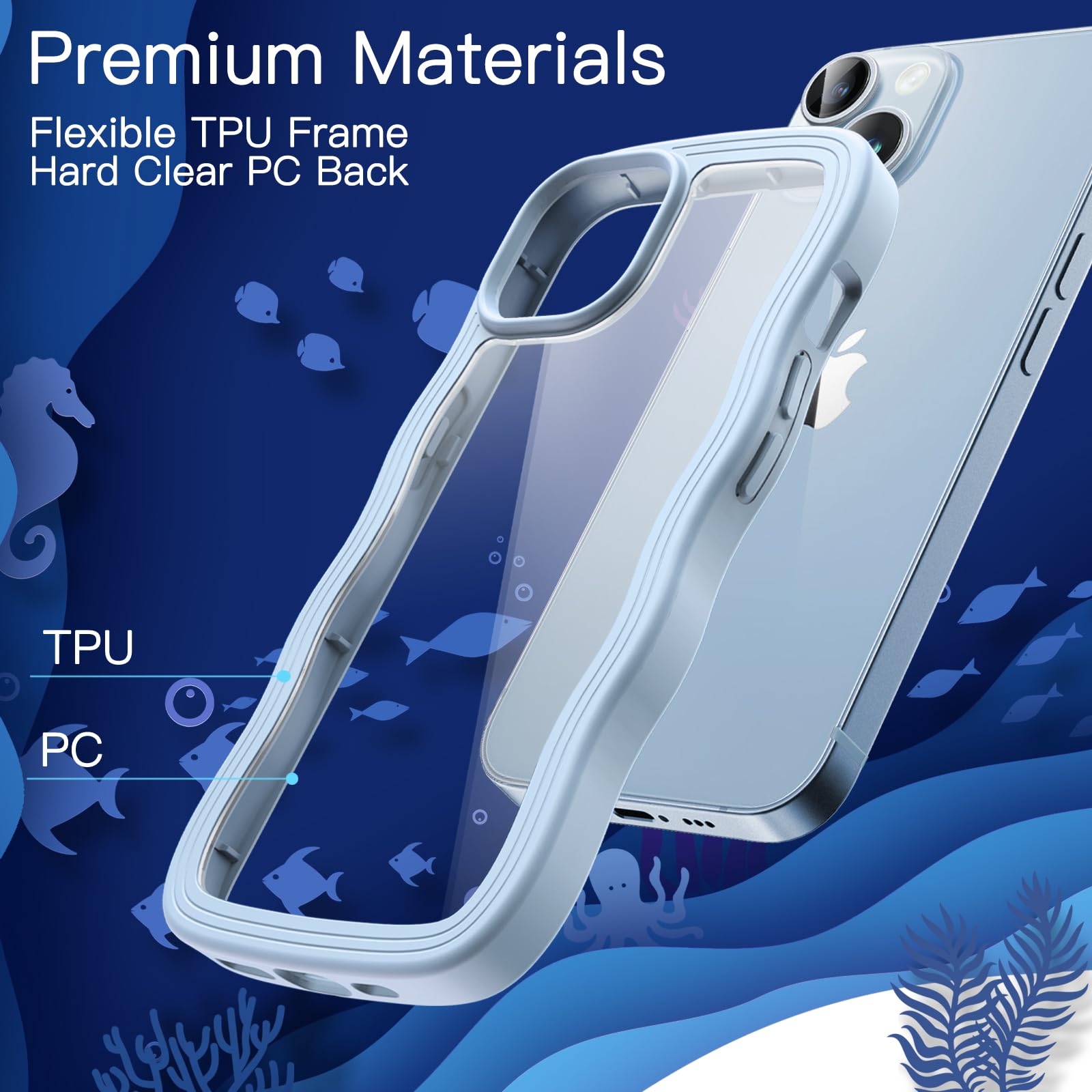 JETech iPhone 14 6.1インチ用 かわいい ケース 波状フレーム うねうね 耐衝撃 スマホカバー 女性用 女子向け クリア ハードPCバック (ブルー)