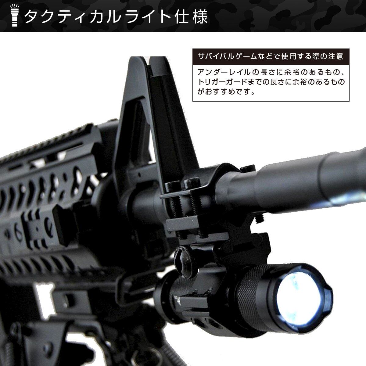 LEDタクティカルライトとアウターバレル取付型マウントリング、ベルト用クリップ