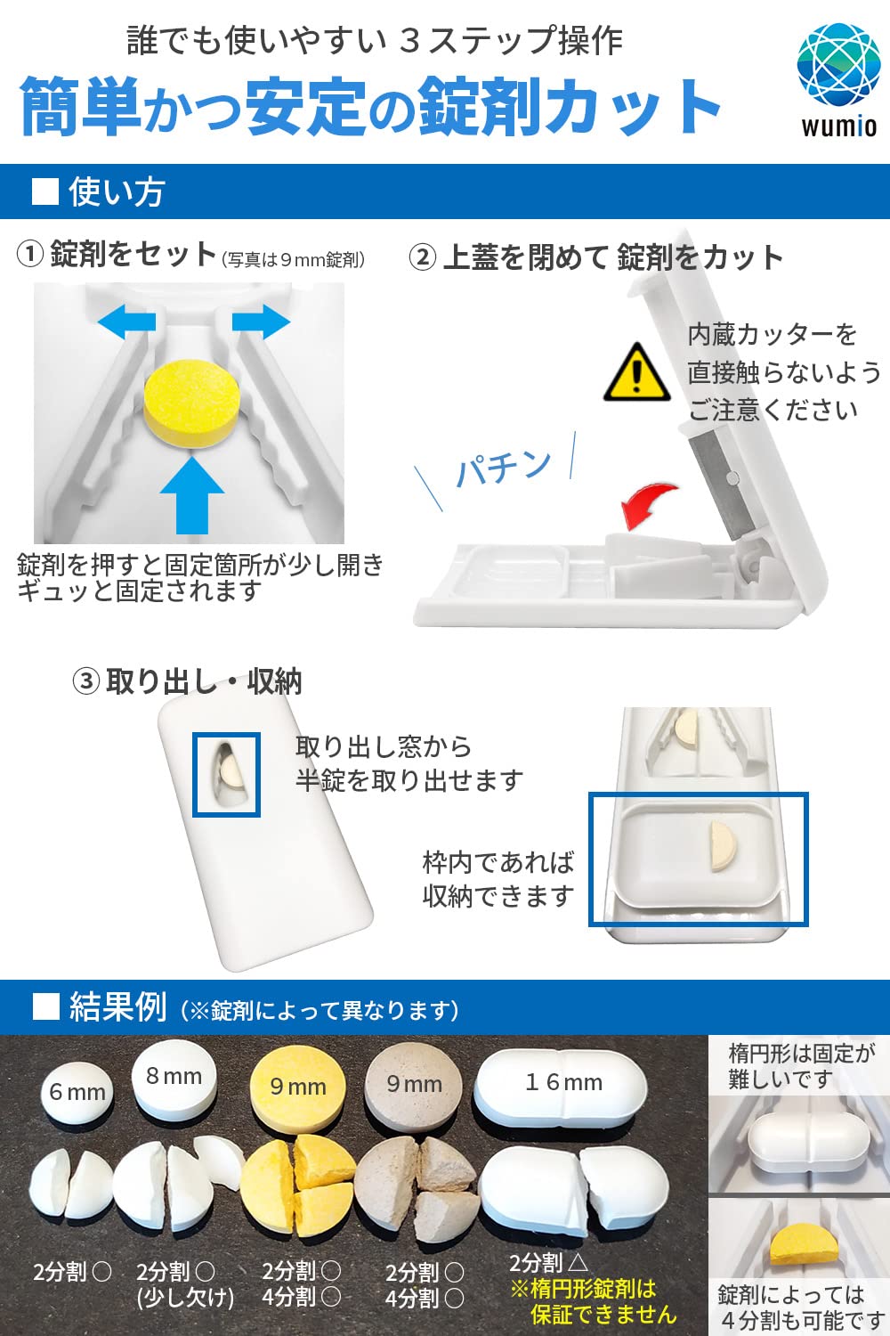 【在庫セール】wumio ピルカッター 薄くて軽い コンパクト 錠剤カッター 薬カッター (1個単品) | わくわくSHOP