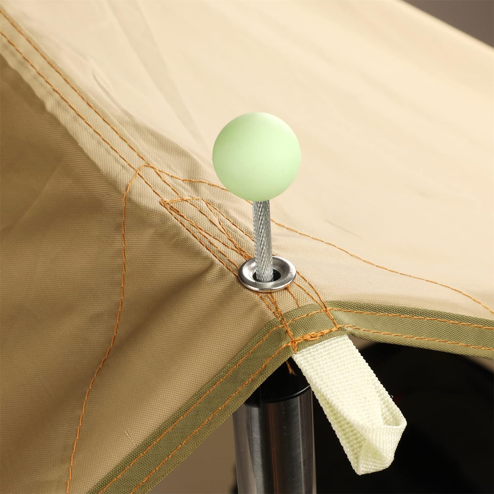 【優れた安定性&夜光機能】厚さのあるトップとなっているため安定性が良く圧力をかけても左右に揺れる心配がなく、風にあおられてもガイロープやグロメットがピンから抜ける心配がないです。日中は太陽光を吸収するか、長時間光にさらされる必要があり、夜は光ります。