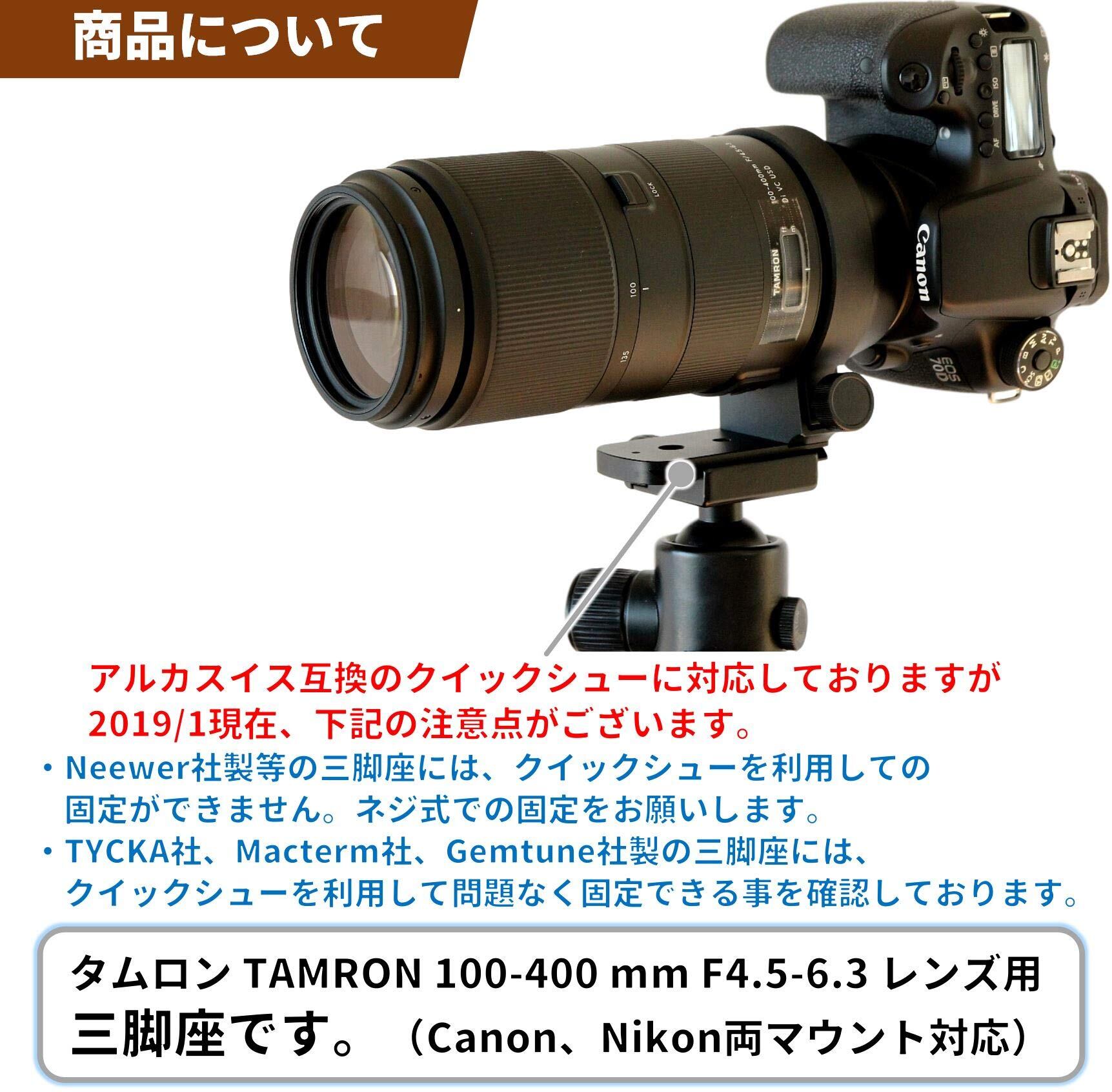 【商品の概要】TAMRON 超望遠ズームレンズ 100-400mm F4.5-6.3 Di VC USDレンズ(Model-A035)と 50-400mm F/4.5-6.3 Di III VC VXD (Model-A067)に対応した三脚座です。