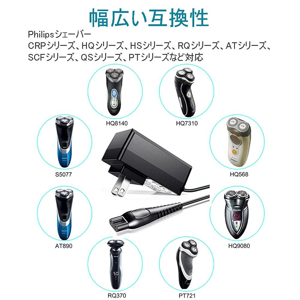 Punasi フィリップス シェーバー用の充電器 15V Philips フィリップス対応電動シェーバー充電器 HQ8505 HC3412 HC3402など対応 髭剃り充電器 ひげそり 充電ケーブル 9000 7000 5000 3000シリーズ HQ6/7/8/9シリーズ