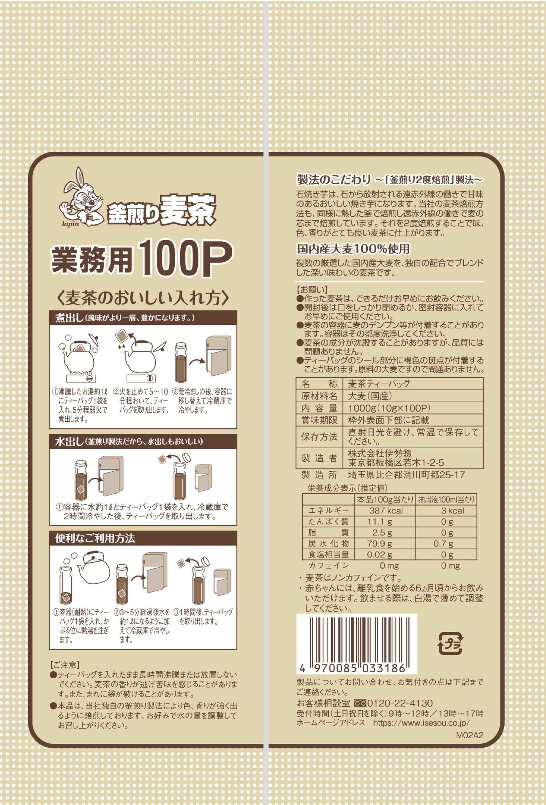 伊勢惣 釜煎り麦茶業務用100P 10g×100P