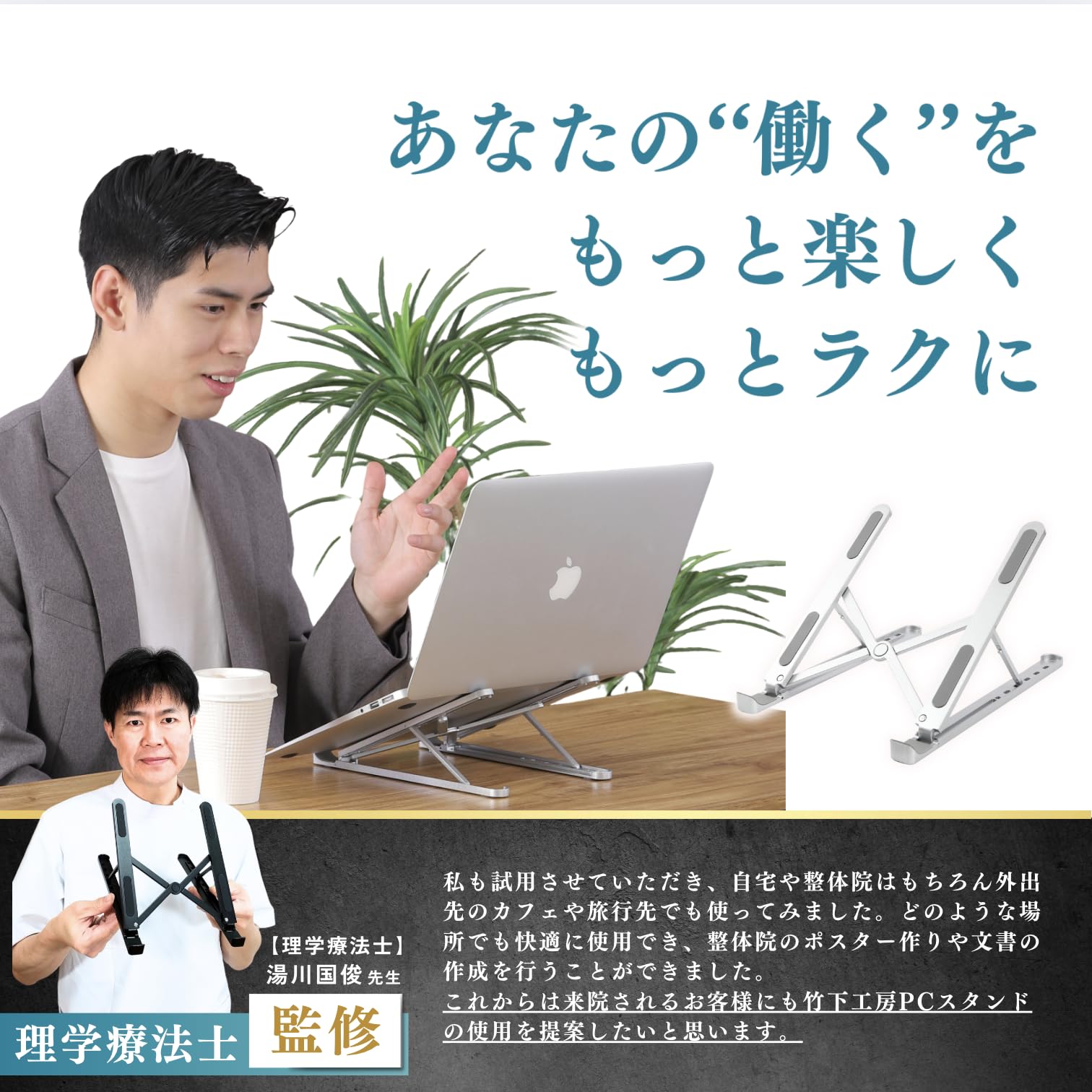 【理学療法士監修】竹下工房 PCスタンド 【手首が当たりにくい】 ノートパソコン 斜め macbook対応 2024年 《専用ケースと書付き》SP-100XM