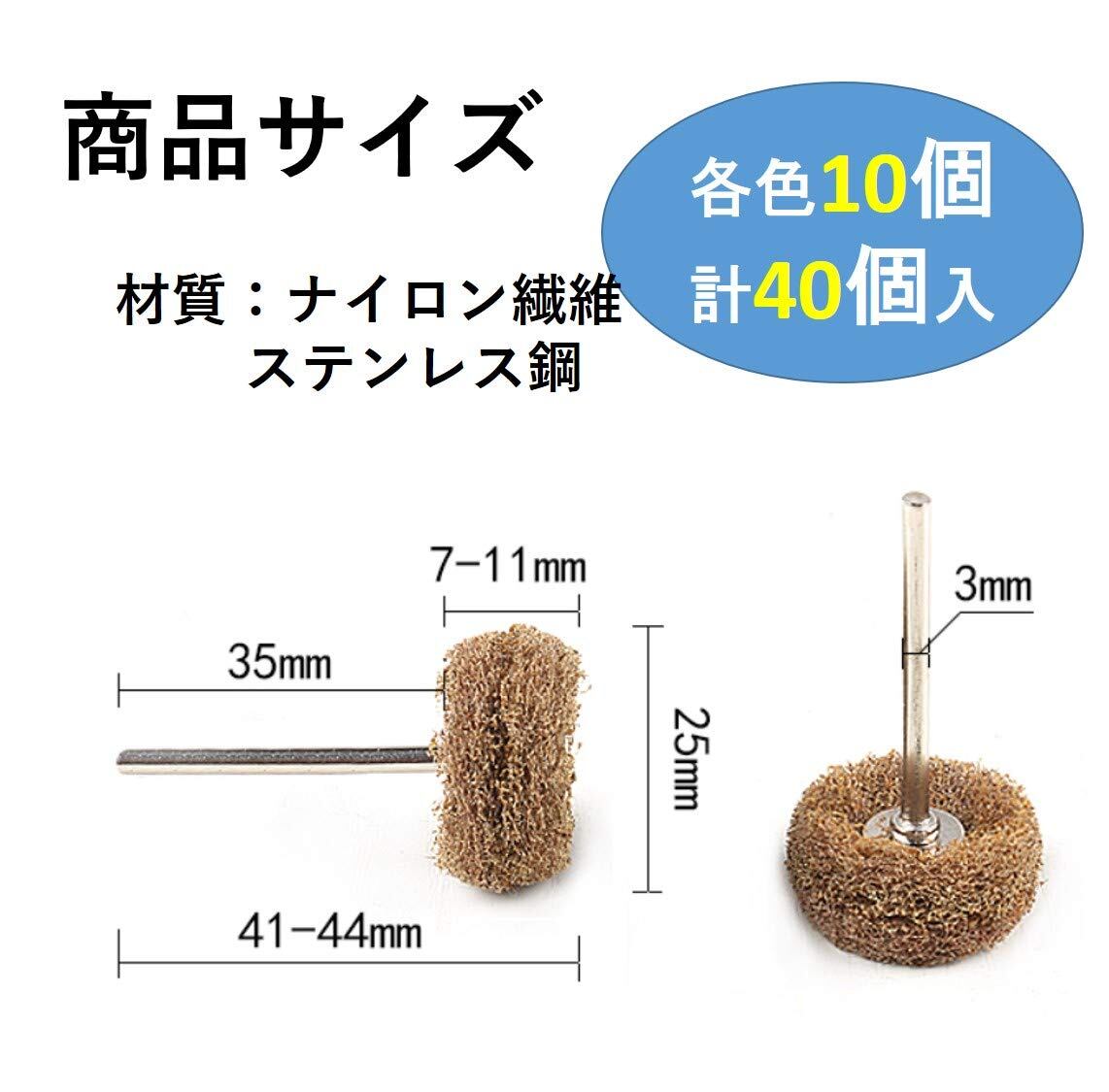4色 繊維 バフ 3mm軸 各10本 40個入り ホイール ナイロン 布ブラシ 研磨 剤 電動 ドリル ルーター ビット