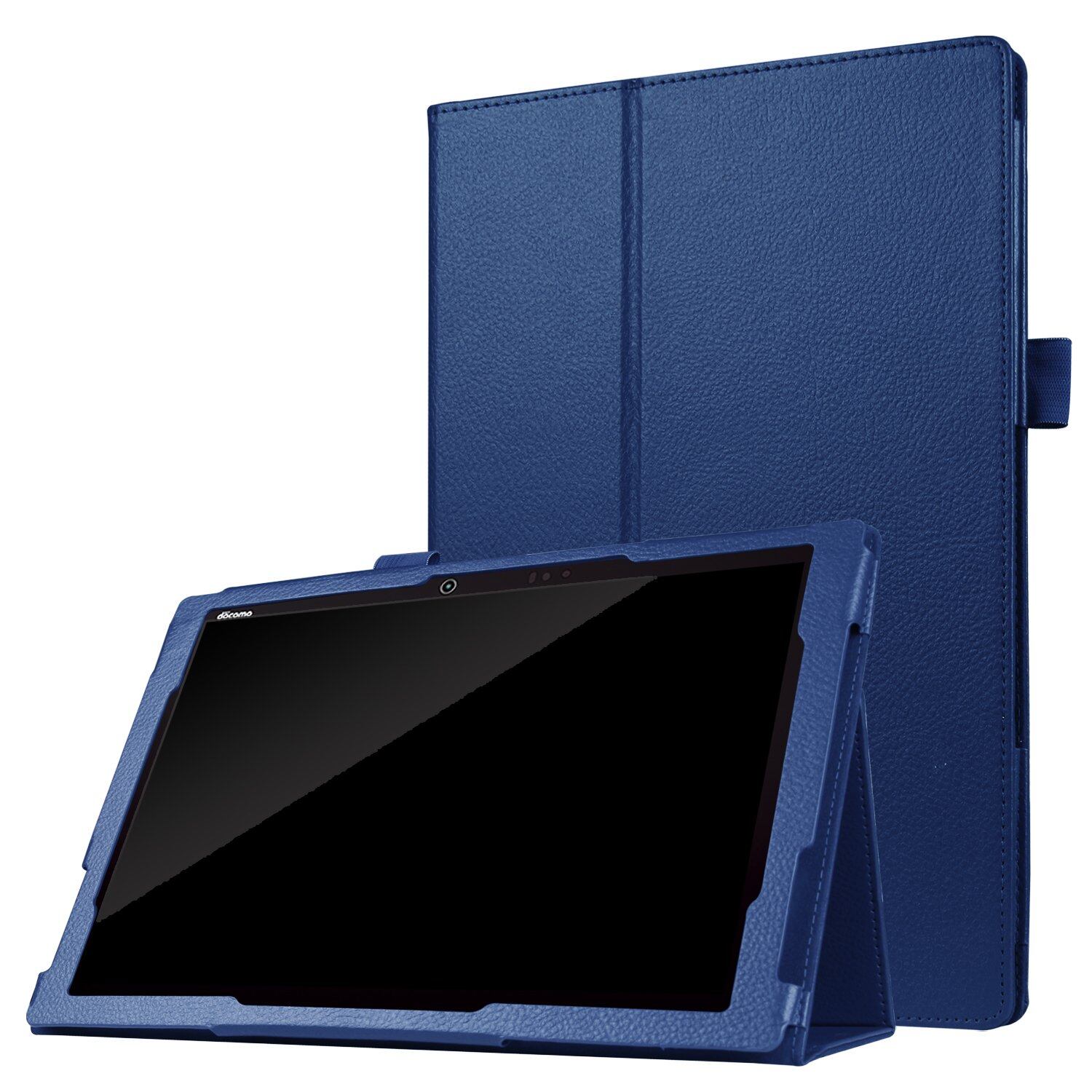 ピーシーエーテック カバー 保護ケース スタンド機能付き専用ケース 二つ折 カバー 薄型 軽量型 スタンド機能 PUレザーケース NTT docomo Arrows Tab F-04H ネイビーブルー