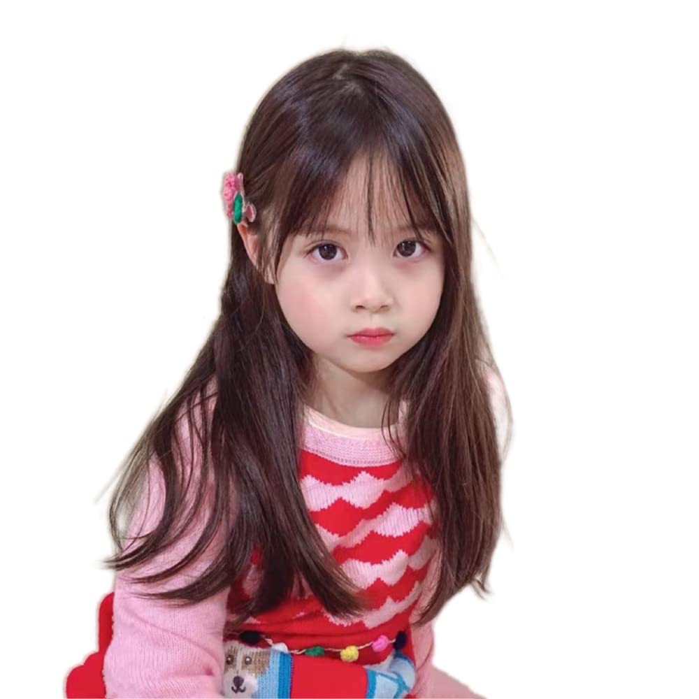 KIDSウイッグ キッズ向け カツラ セミロング ストレート ぱっつん前髪 ガールズ 子供 オールフルウィッグ ふわふわ 可愛い girl wig 軽量 仮装 七五三 発表会 誕生会 つけ毛 仮装 お宮参り(ネット付) (S ダークブラウン)