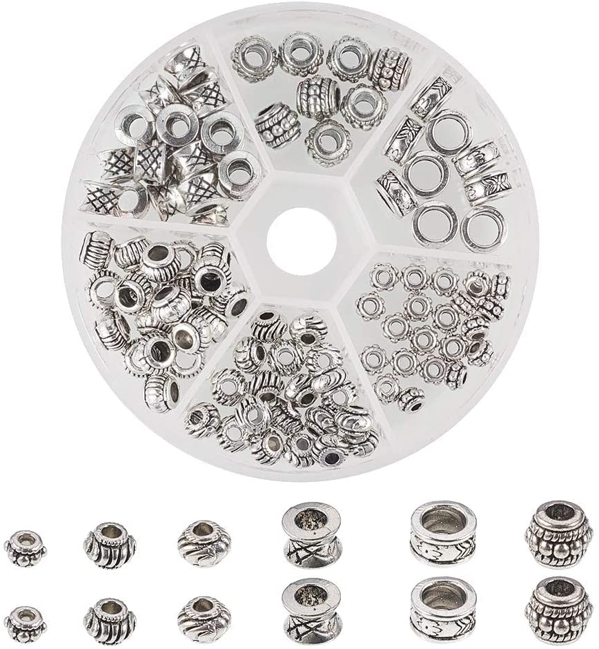 PH PandaHall 約130個/箱 6種 合金 ロンデル スペーサービーズ メタル チベットスタイル オーバルビーズ ラウンド カラム DIY用 クラフト ジュエリー用 アクセサリーパーツ 手作り素材 混合色