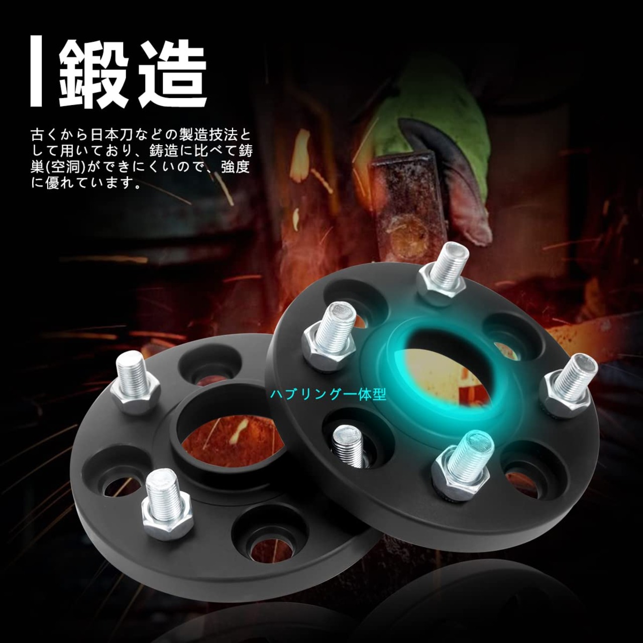 【ボルト&ナット】本製品のボルトとナットには、強度の弱い亜鉛ボルトを使用せずに、高強度のカ一ボンスチ一ル鋼を採用。高い強度で車の足元を支えます。※ナットは専用設計の為、スぺ一サ一の厚みによってナットの長さも異なります。