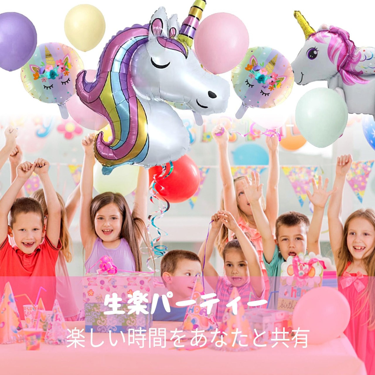 仕様: happy birthday ガーランドx1(ピンク) 単旗サイズ 約20cmx16cm 子供サイズBIGユニコーンx1(約110cmx77cm) 足つきユニコーンx1(約56cmx50cm) 可愛いキラキラユニコーン柄アルミバルーンx2(45cmx45cm) マカロンバルーン8個(ピンク、ホワイト、パープル、グリーン各2枚) HAPPY BIRTHDAY付きホワイトバルーンx2 レインボー数字バルーン1個付き(約80cm) 付属品:ストロー、バルーンテープ3枚(60点)