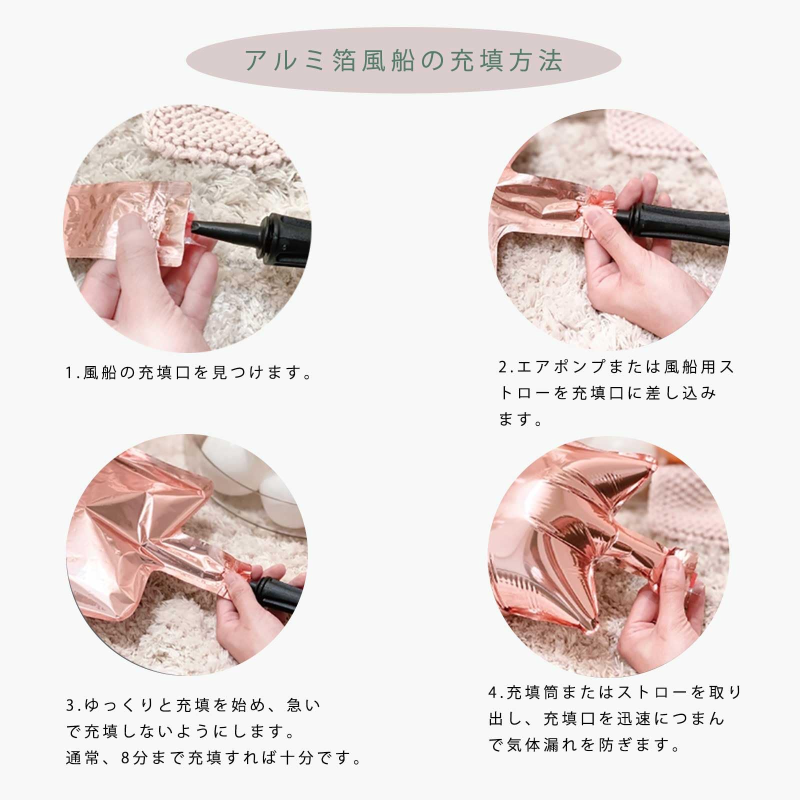 【初心者でも飾れるユニコーンバルーンセット】 自信がない方でもスムーズにご準備できます。 主役の方が喜ぶ姿を思い描きながら、飾り付けをお楽しみください。 誕生日のお祝いに!手に持っての「記念撮影」にも、 壁に貼る飾りつけにも、ちょうど良い大きさです! 空気入れ方 (ハンドポンプがあると便利です) 1. ストロー又はハンドポンプを空気穴に差し込みます。 2. ある程度空気が入ったら、軽く押しながら入れます。 3. 空気が全体的にいっぱいになるまで入れすぎ注意破れないように! 4. 出来上がります。