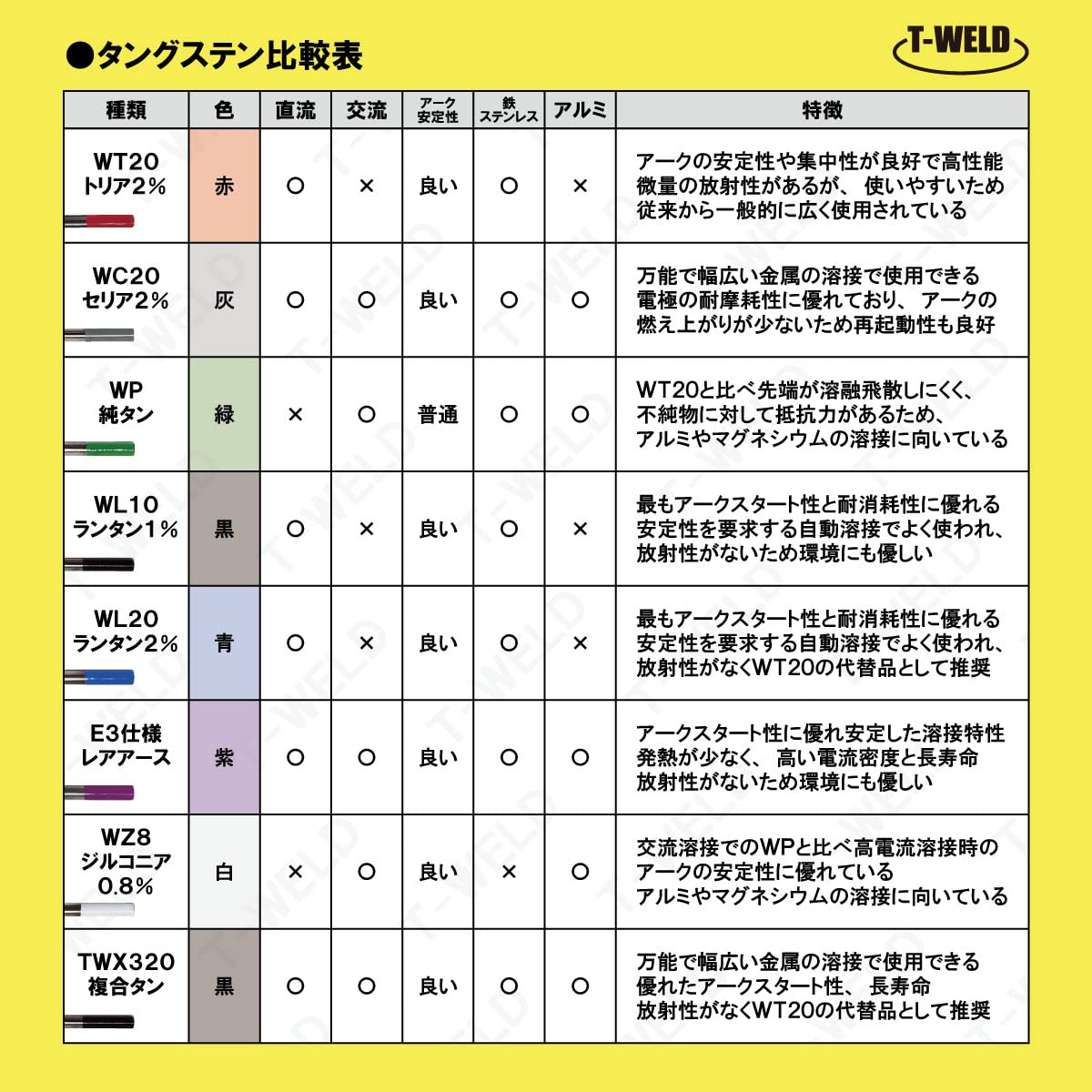 TIG 溶接用 タングステン電極棒 WC20 セリウム2%入り 線径:1.6mm 10本 長さ150mm