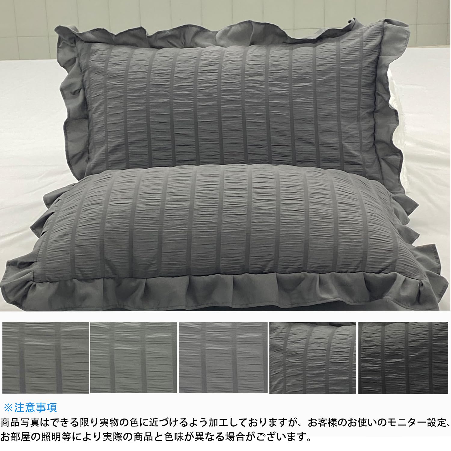 【在庫処分】Hopeholic 枕カバー 2枚セット ピローケース 43x63 かわいい フリル シアサッカー生地 封筒式 まくらかばー 優しい肌触り 柔らかい 洗い替え 速乾タイプ ピーチスキン加工 四季通用 ダークグレー フリル | わくわくSHOP