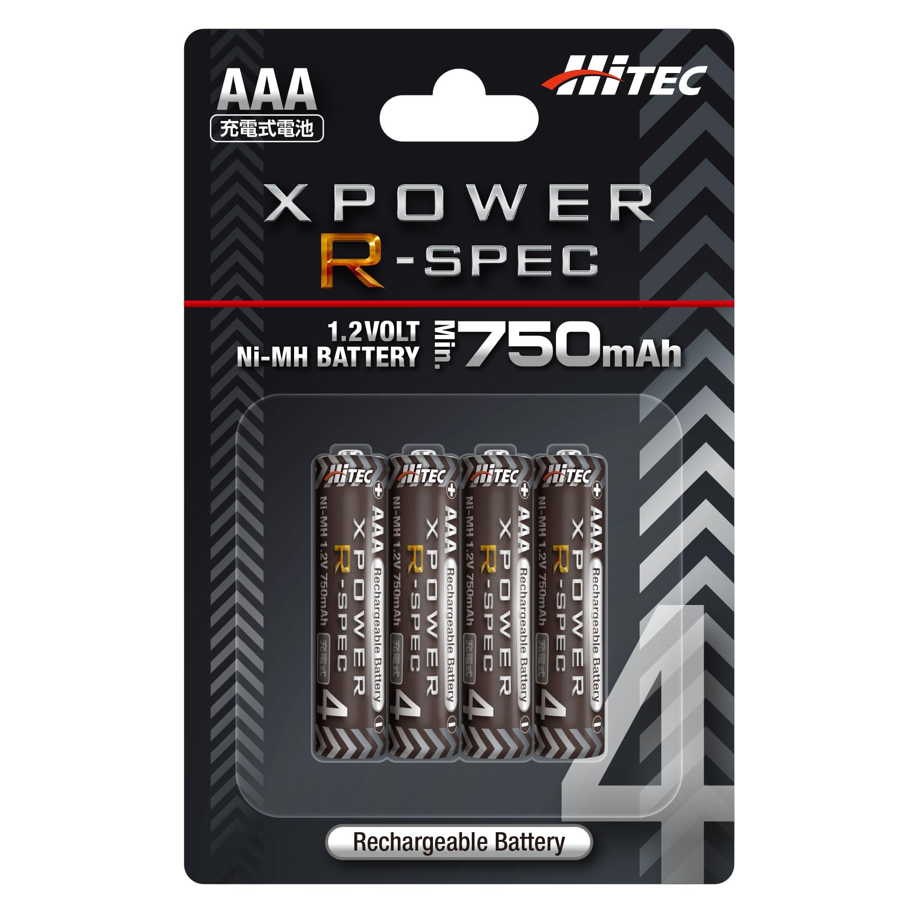 ハイテック エックスパワー Rスペック XPR AAA 750mAh 4本セット Ni-MH 1.2V バッテリー 充電式 単4 電池 ニッケル水素 ラジコン 電動 RC ミニ四駆 カメラ おもちゃ 家電 PSE適合 日本正規品 XPRAAA750