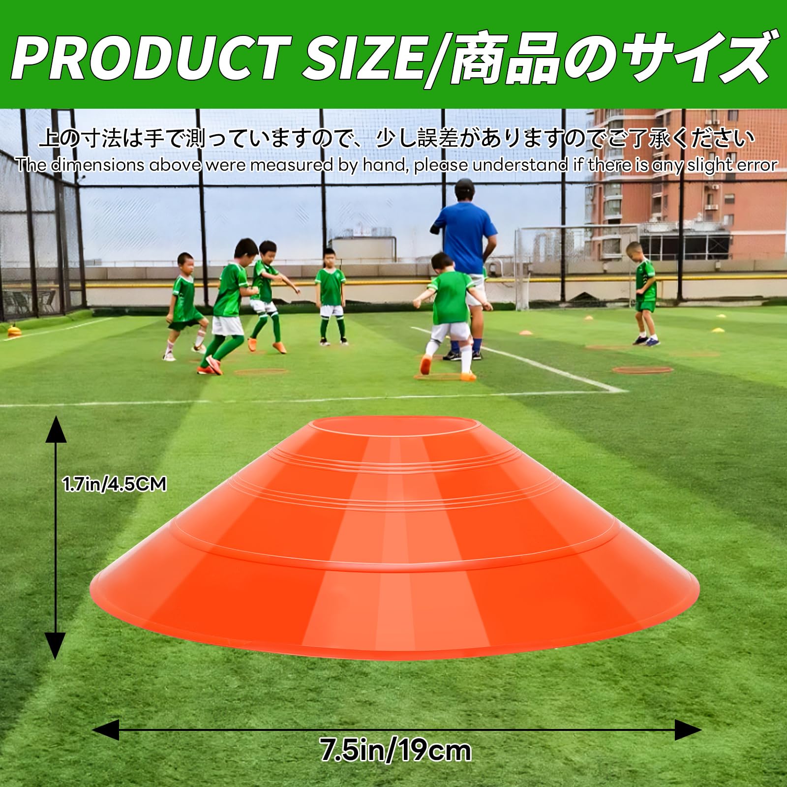 サッカー マーカー用途が広い:サッカー、野球、テニス、陸上、ローラースケート、フットサルなどの各種スポーツに適用する。自転車やバイク、ドローンでの練習にも使えます。目標、距離、エッジ、境界マーカー、障害物、訓練速度、正確性、敏捷性を設定するために使用されます。学校、運動会、団体競技や部活の理想的な選択です。