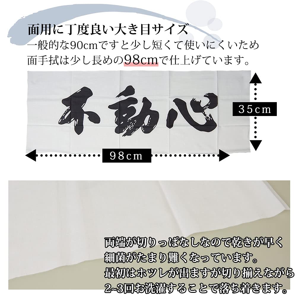 剣道屋 剣道 面 手拭い(面手ぬぐい 面タオル) 手捺染 不動心(白)