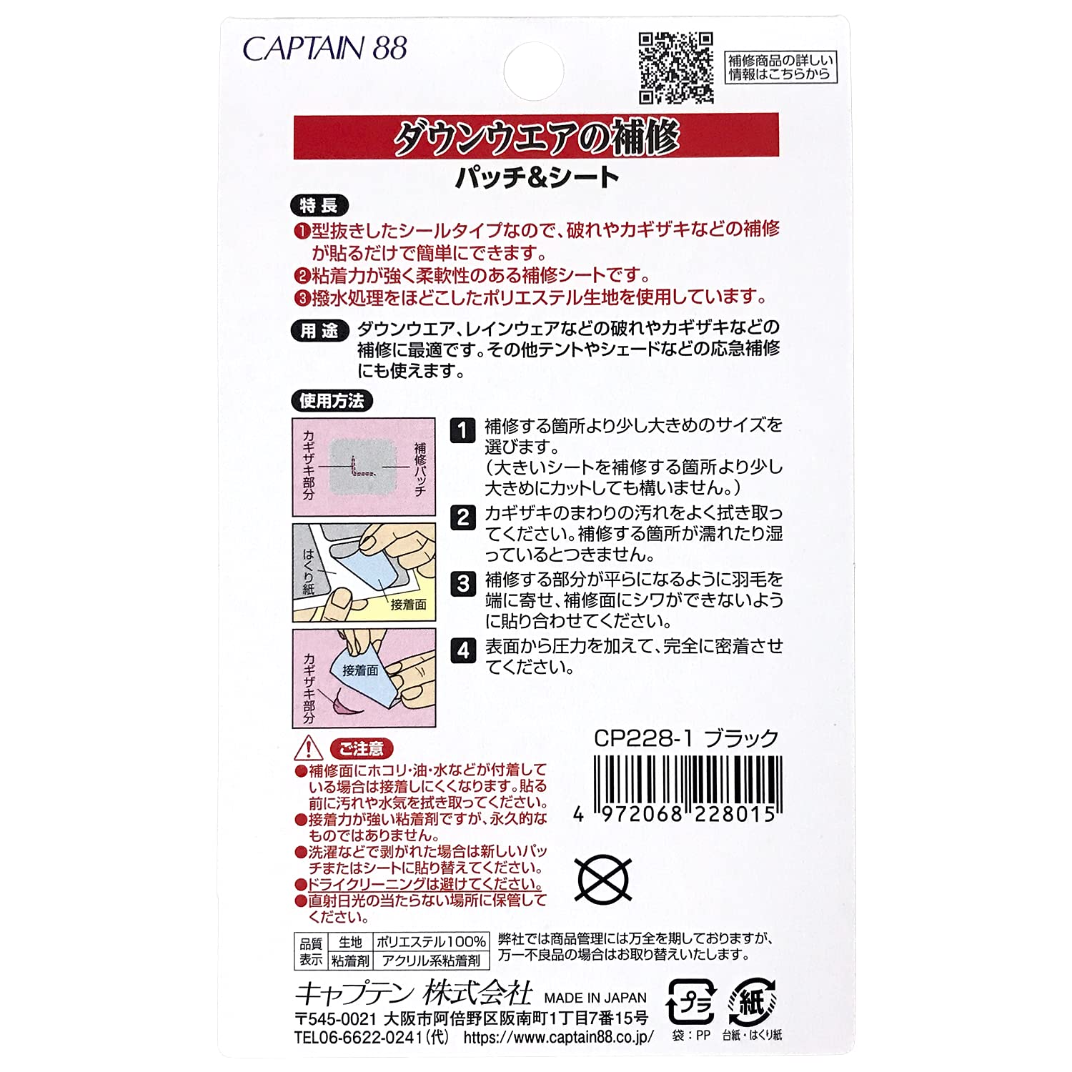 CAPTAIN88 キャプテン 簡単補修シリーズ ダウンウェアの補修パッチ&シート 5枚入り 4種サイズ #1 ブラック シールタイプ CP228