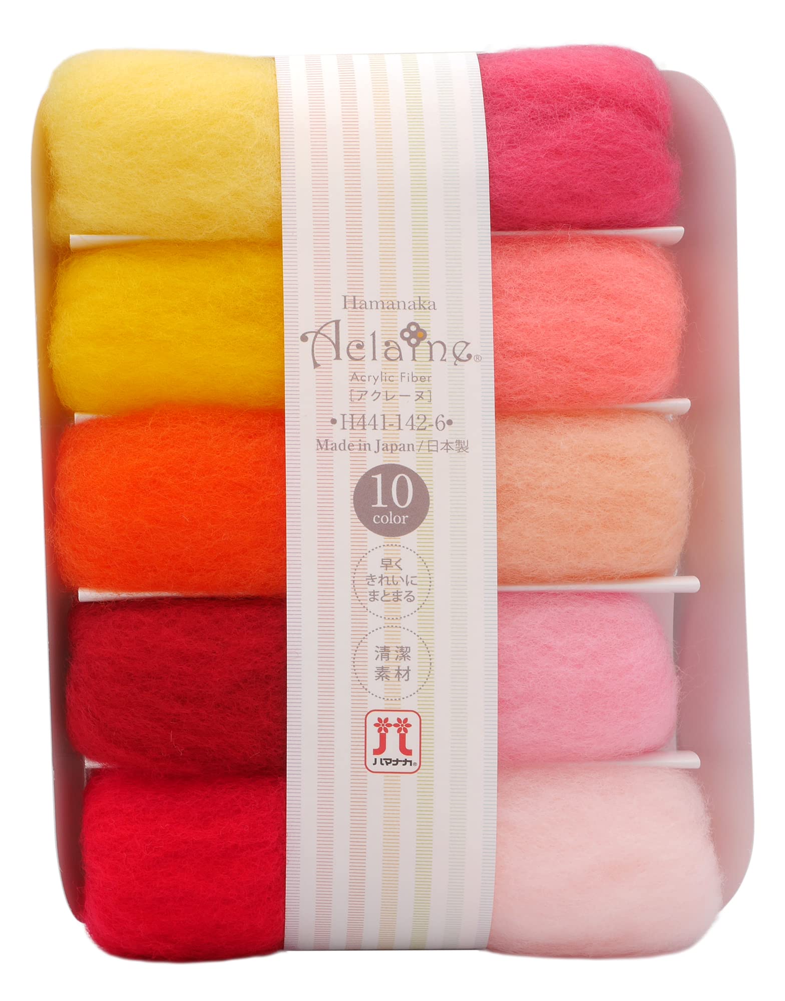 ハマナカ 羊毛フェルト アクレーヌ 10色セット 各色約2g入り 赤・黄・ピンク系 H441-142-5