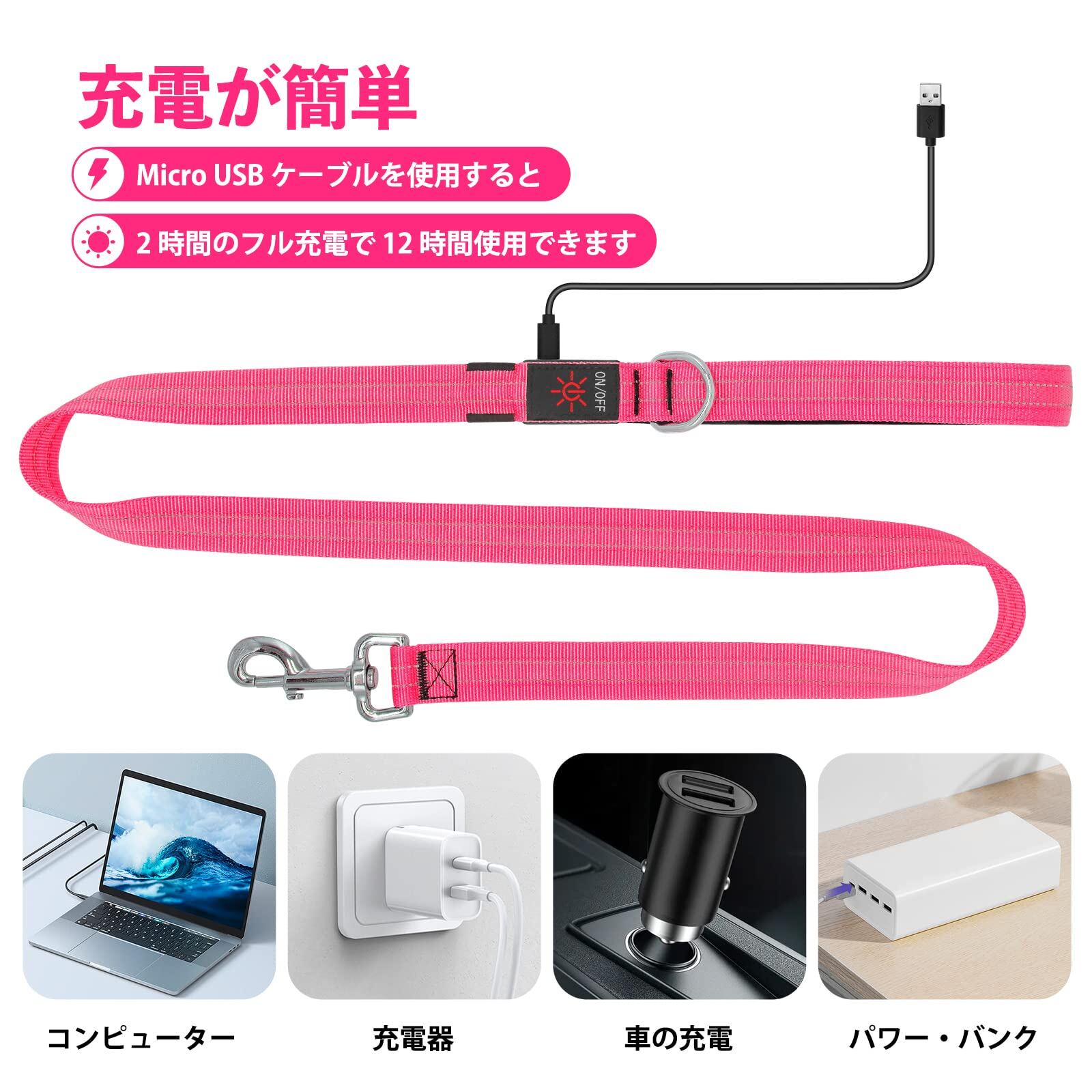 KOSKILL 1.2m LED発光 ドッグリード リード 犬 散歩 ライト防水型 高輝度 光るリード 視認距離500m USB 充電式 ペット用 夜 訓練リード 夜間安全 お散歩 中型犬 大型犬 (ピンク)
