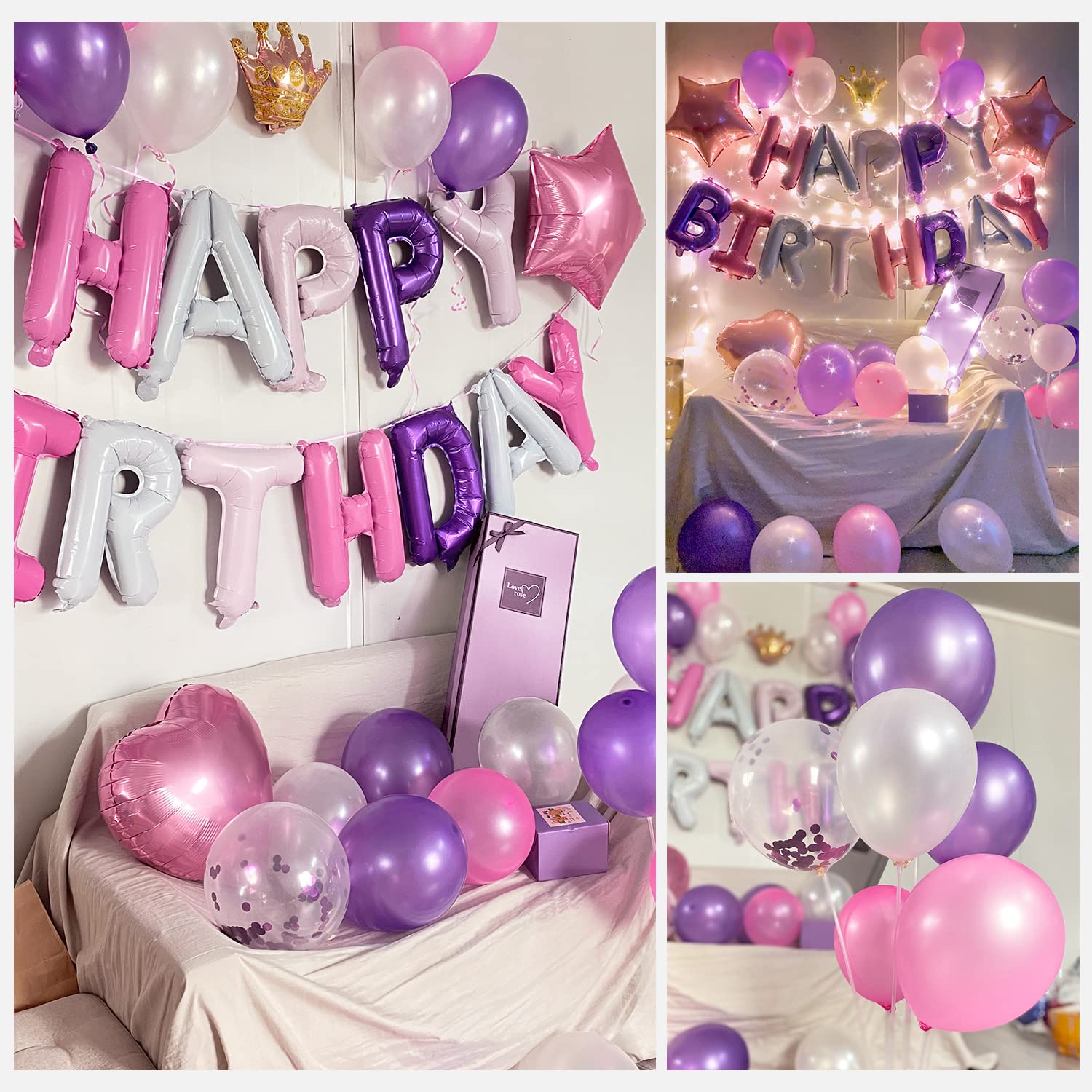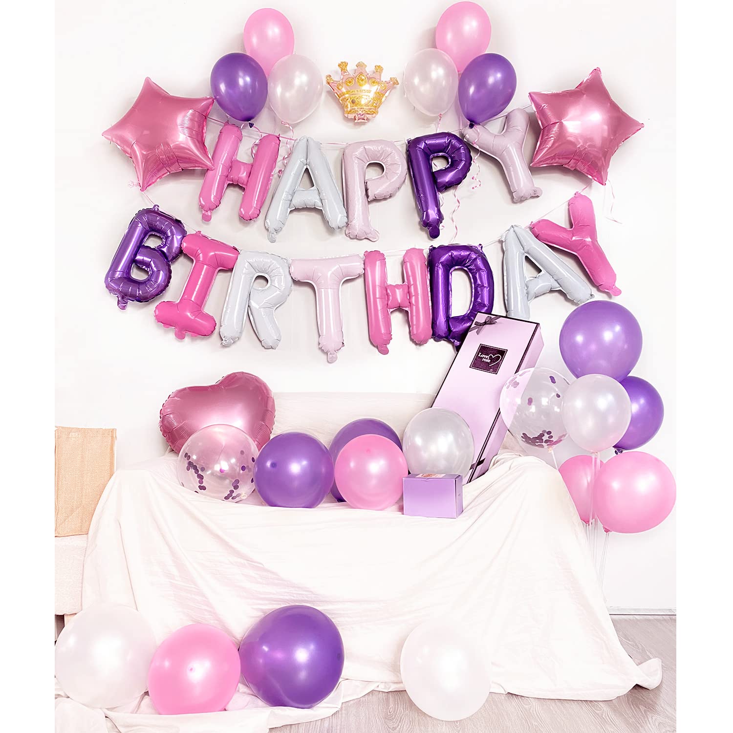 Iysoll 誕生日 バルーン 飾り付け 風船 バスデー バルーン HAPPY BIRTHDAY ガーランド 王冠 紙吹雪風船 誕生日パーティー お祝い 記念日 サプライズ パープル ピンク