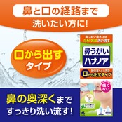 鼻詰まり、ムズムズ感などの不快感に「ハナノア」。花粉、雑菌、ハウスダストをすっきり洗い流します。使い方は簡単、専用の容器に洗浄液を入れるだけ。ご自宅で簡単に鼻うがいができます。またハナノアは体液に近い成分でできているから、鼻にしみません。爽やかなミントの香りで、鼻の奥までスッキリ!