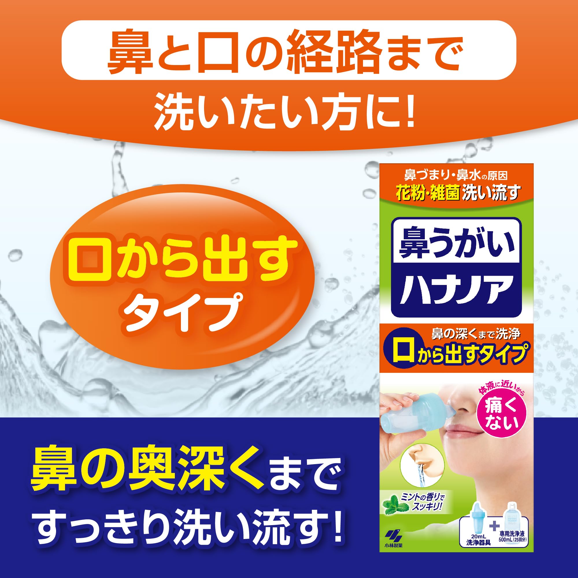 【お好みに合わせて選べます】鼻うがいに初めて挑戦する…そんな方には「鼻から出す」タイプがオススメ。初めての方でも簡単にご使用いただけます! 鼻の奥深くまでしっかり洗い方には「口から出す」タイプをどうぞ!