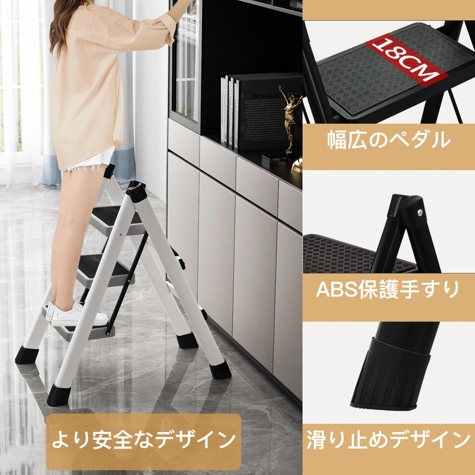 BaraRose 脚立 3段 鉄 折りたたみ 脚立 軽量 足場台 脚立 持ち運び便利 滑り止め付き ステップ台 安全 多機能 脚立 折りたたみ 室内 屋 (ホワイト)
