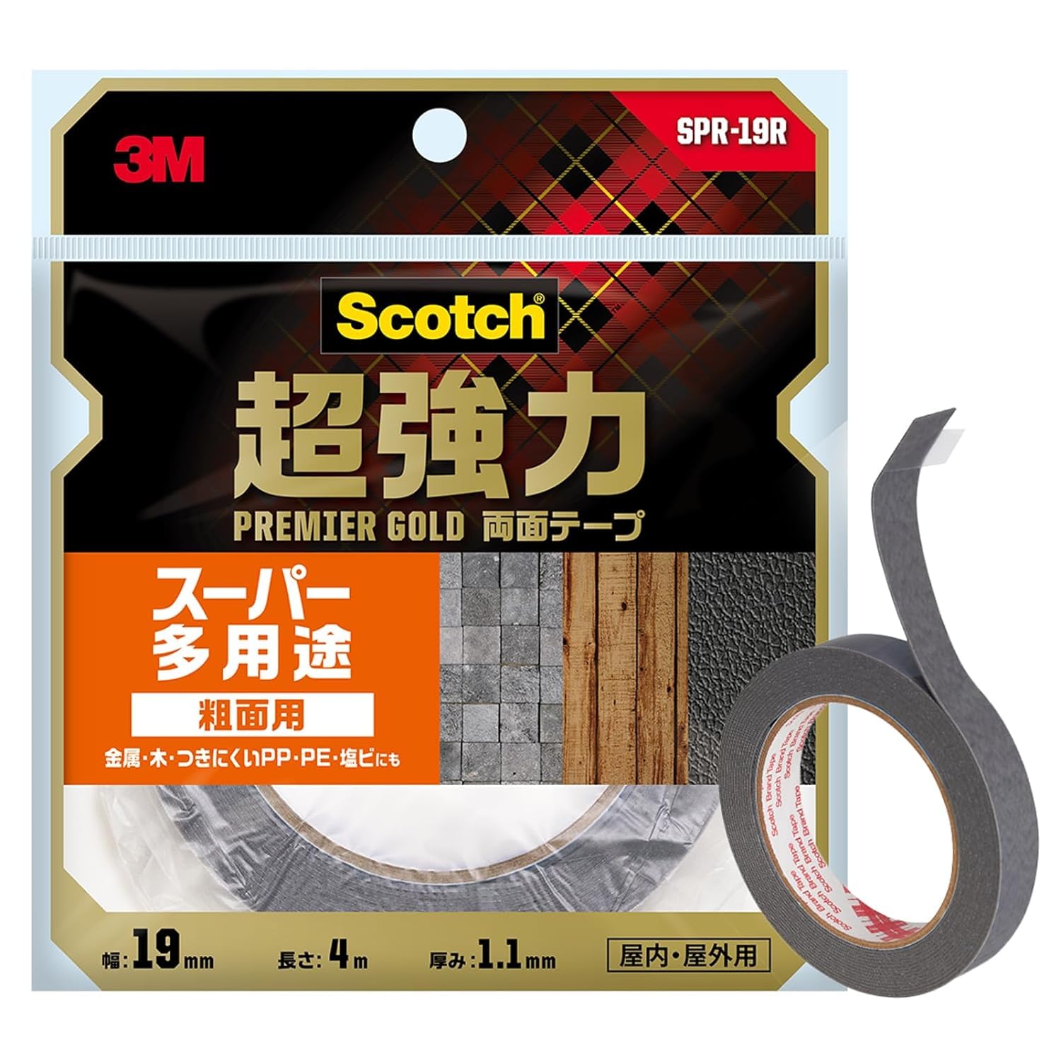 3M スコッチ 超強力両面テープ プレミアゴールド スーパー多用途 粗面用 幅19mm長さ4m SPR-19R