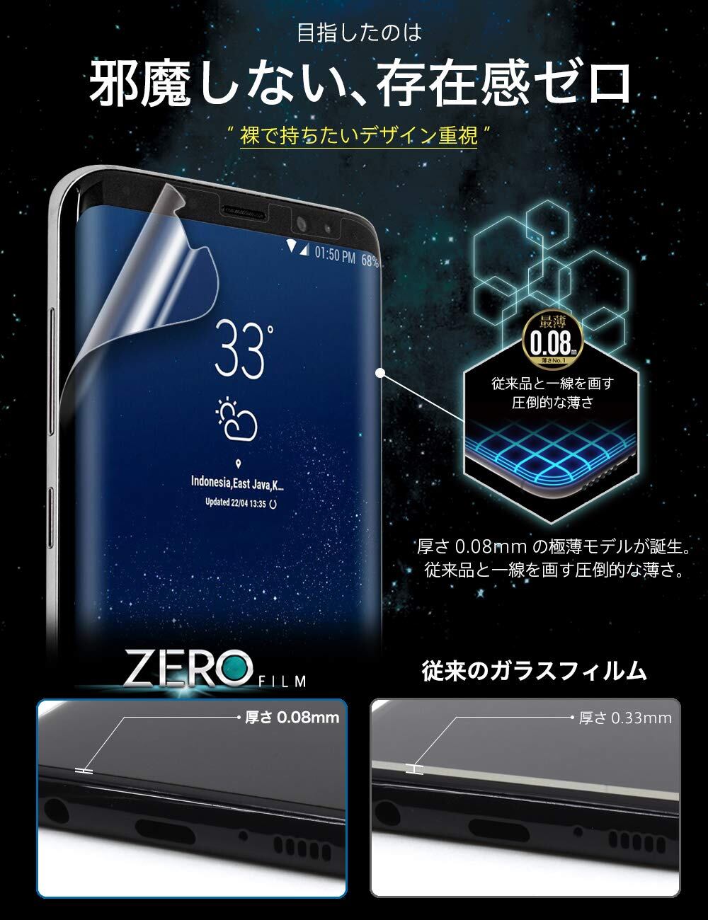 【 貼ったら消える、魔法のフィルム。】 従来品のガラスフィルムとは一線を画した スマホ本来の美しさを魅せる。 スマートフォンをカッコ良く見せたい[ デザイン重視のあなた ]に 使って欲しい1枚。 【 存在感ゼロ ~ 0.08mm 】 見えないフィルム。ガラスフィルムの1/4の薄さだから、カメラ穴やセンサー穴、縁の回りも目立たず「小さなゴミ・ほこり」が溜まらずいつも綺麗。「間に何かがある」がなくなり、何も貼っていないような一体感に、きっと驚くはず。 従来のガラスフィルムの常識を覆す最新フィルムを体験してください。 .