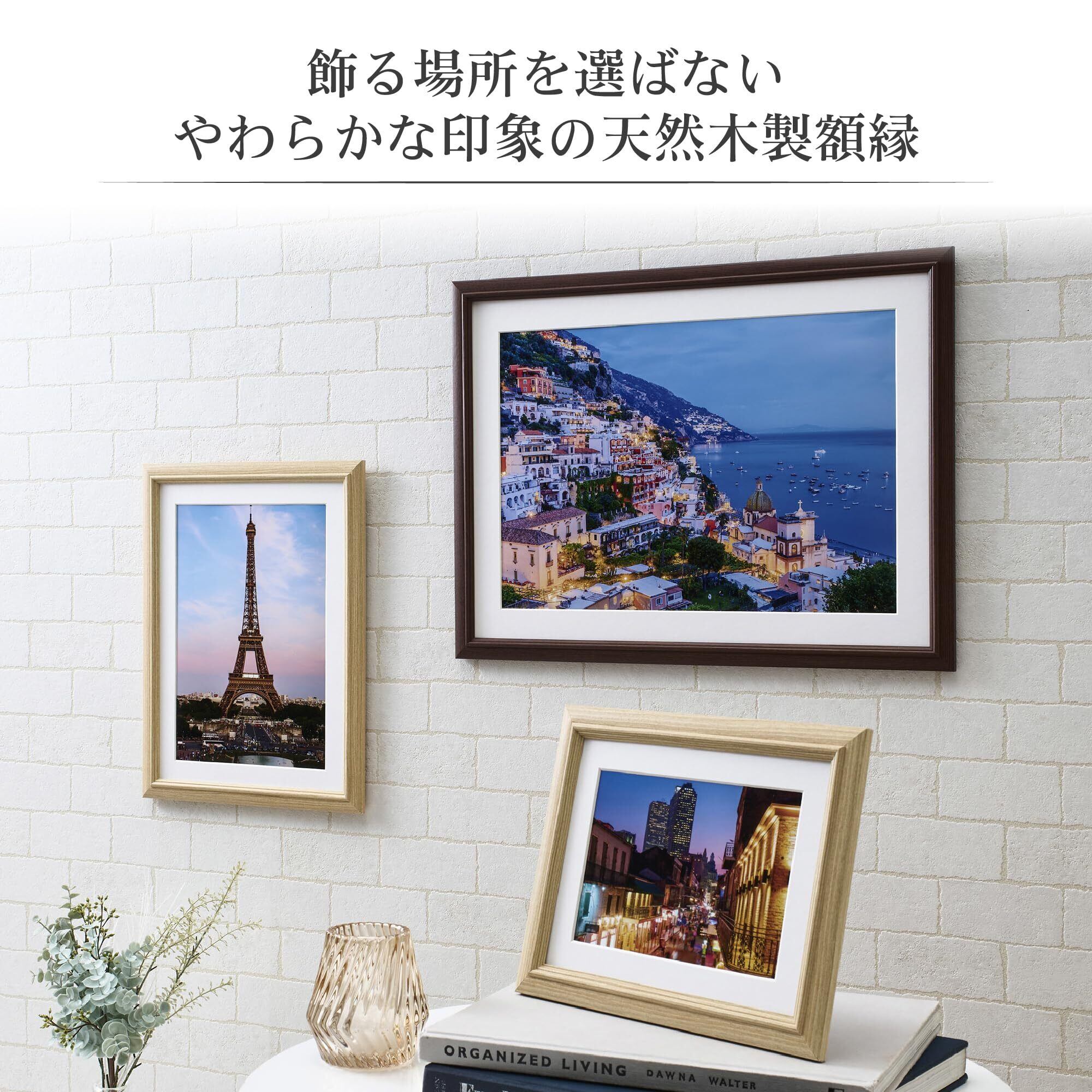 お手頃価格の木製額縁です。フレームの外側はゆるやかな曲線を描き、やわらかで温かみのある印象。