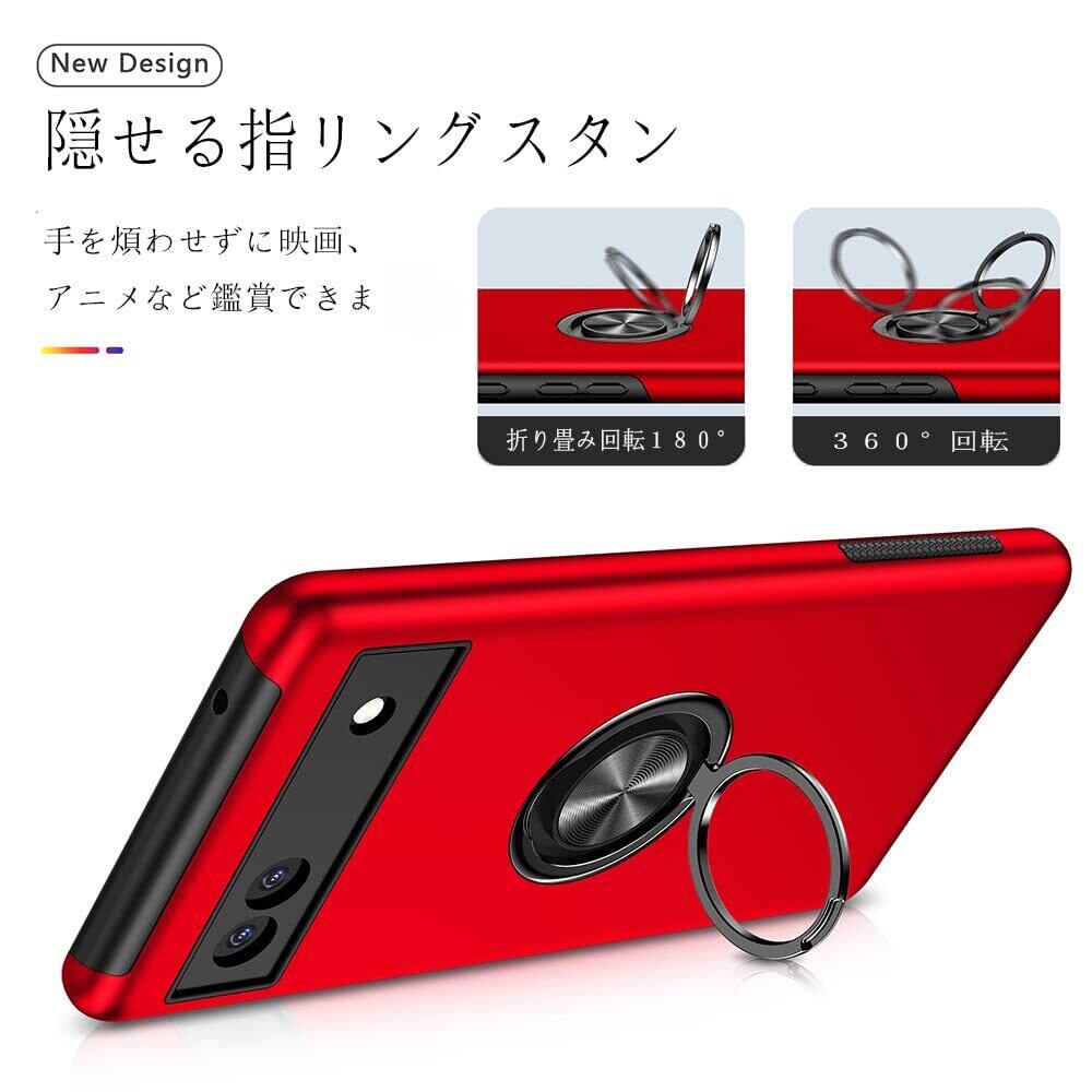 スマホケース Google Pixel 6A 用 ケース リング付き 耐衝撃 pixel6a ケース リング googlepixel6a 衝撃 携帯ケース カバー スタンド付き レッド