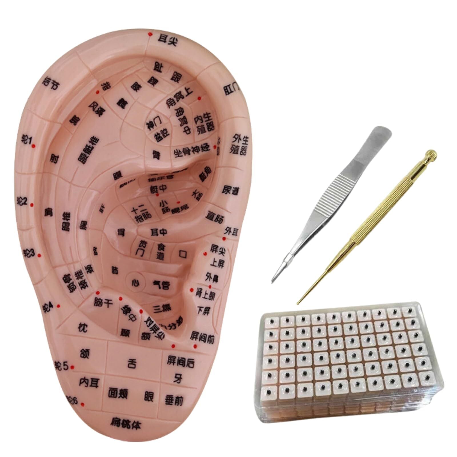 Quikaboo 耳ツボ 模型 立体模型 耳ツボ模型 耳つぼシール 17cm 耳つぼ模型 耳つぼジュエリー (マッサージ用銅棒・ピンセット 付属)