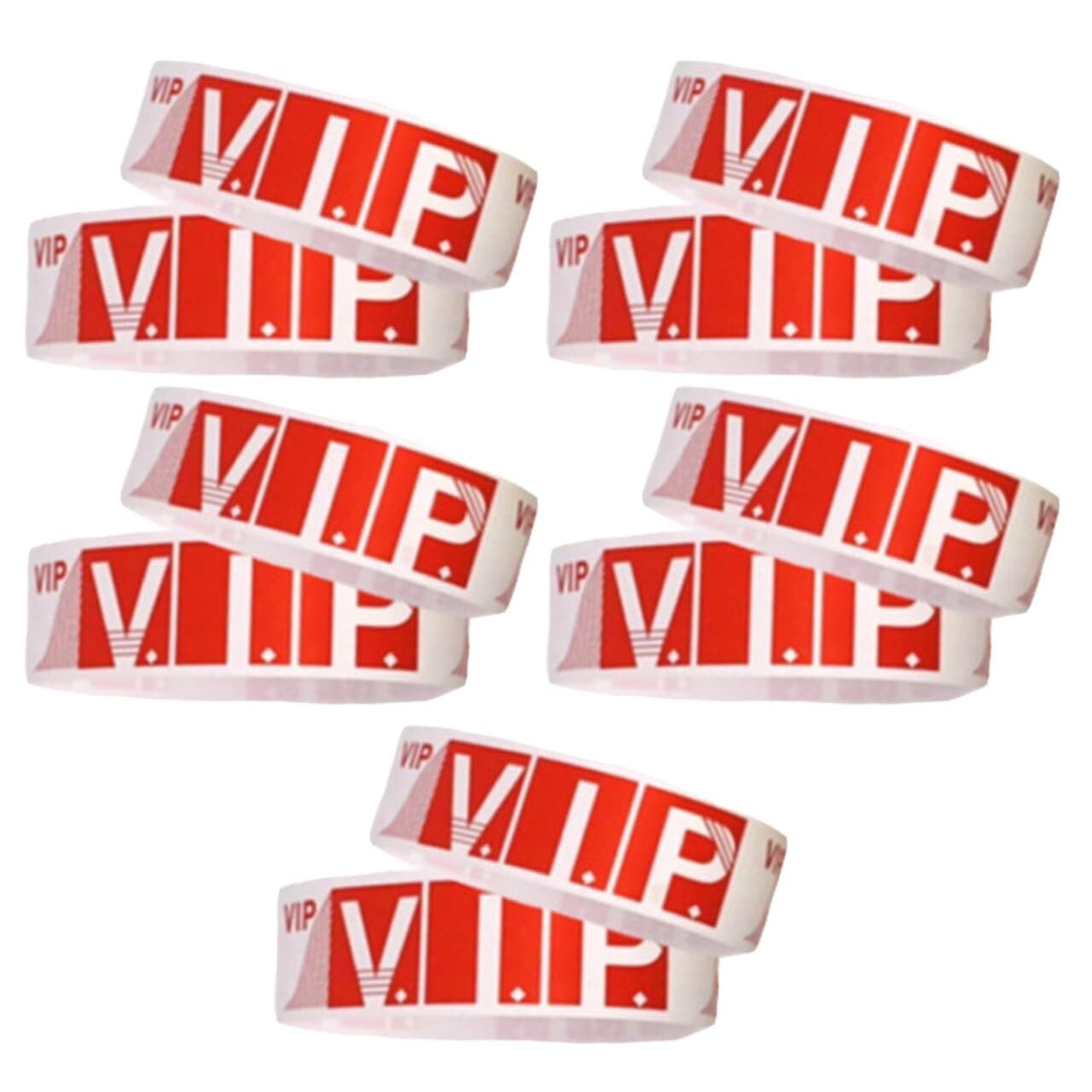 使い捨て リストバンド vip レッド 500枚セット:イベント、クラブ、ライブ、フェスなど様々な会場で入場管理や再入場管理、参加証として活用できるセットです。7色から選べる豊富なバリエーションになっておりますので、入場者を色で区別する事もできます。