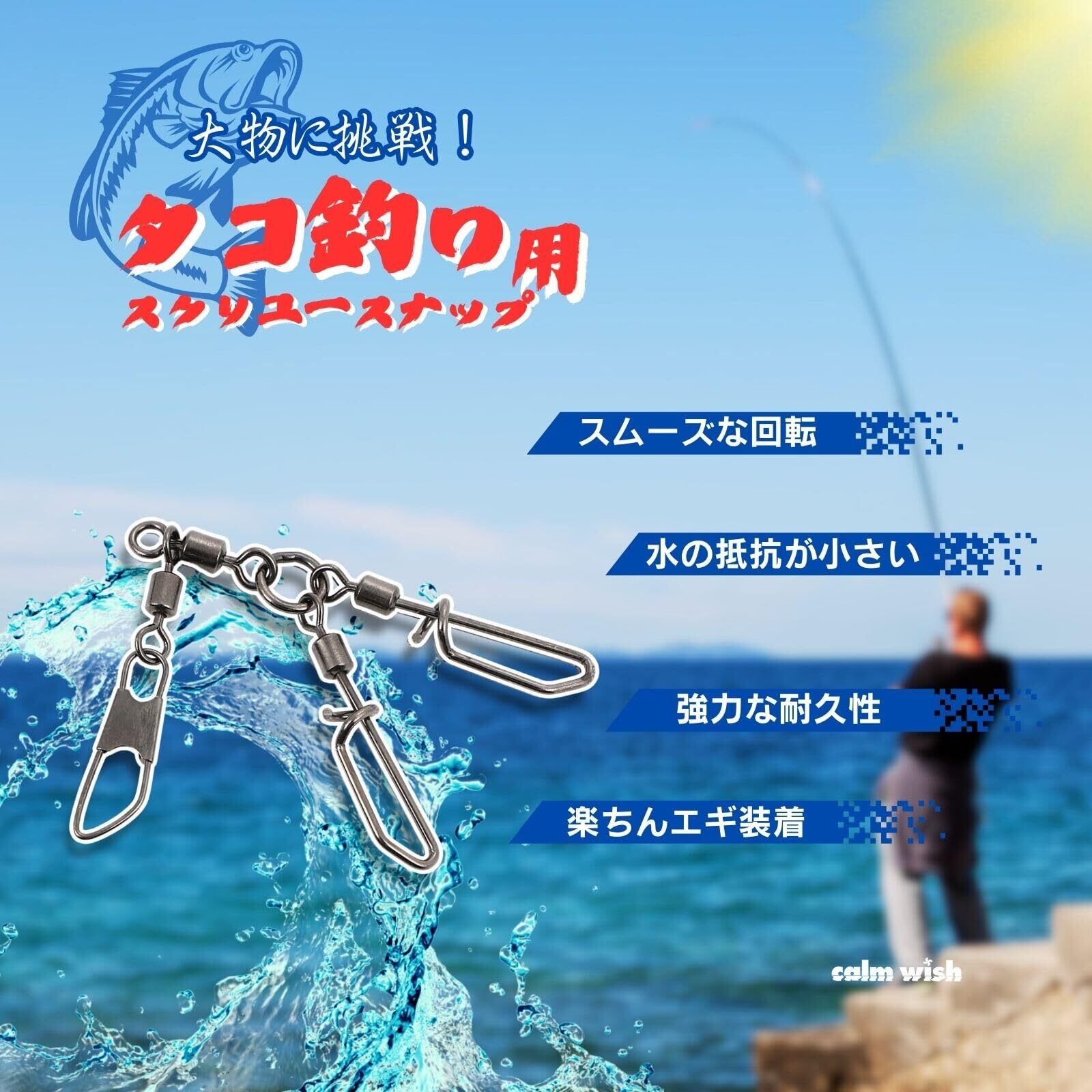 calm wish タコ エギ スイベル スナップ サルカン 釣り 蛸 ダブル 仕様 スクリュー 海 ルアージグ 仕掛け 道具 ワンタッチ リング