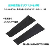 【紫外線カット】:高エネルギーの紫外線を強力に吸収し、真夏の日射しから腕を最大限に保護できる紫外線吸収剤で処理されます。UVカット、吸汗速乾、抗菌防臭機能。