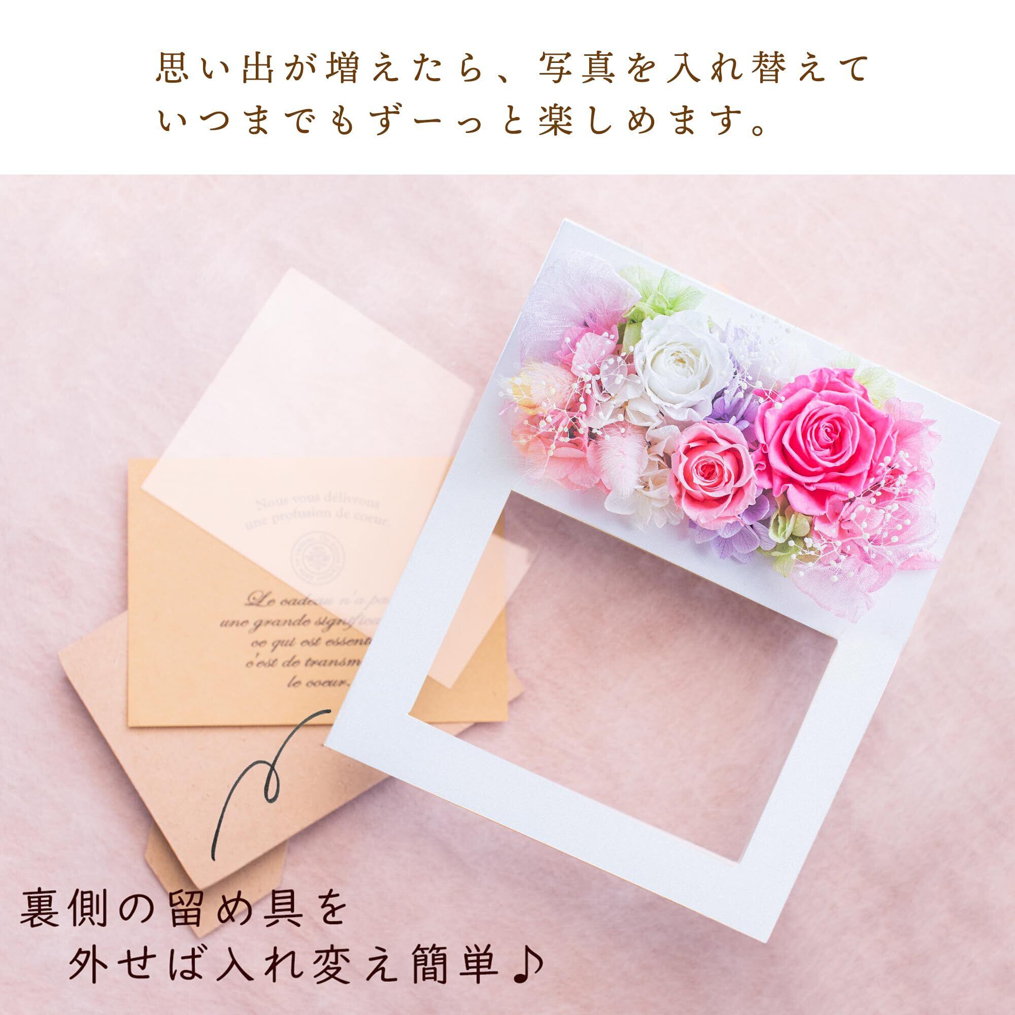 プリザーブドフラワー 写真立て 結婚祝い 誕生日 プレゼント ギフト フォトフレーム 結婚記念日 バラ かすみ草 写真入り 結婚式 写真立て 出産祝い 記念日 女性 ブリザードフラワー L版 (オールプリザ・ローズピンク)