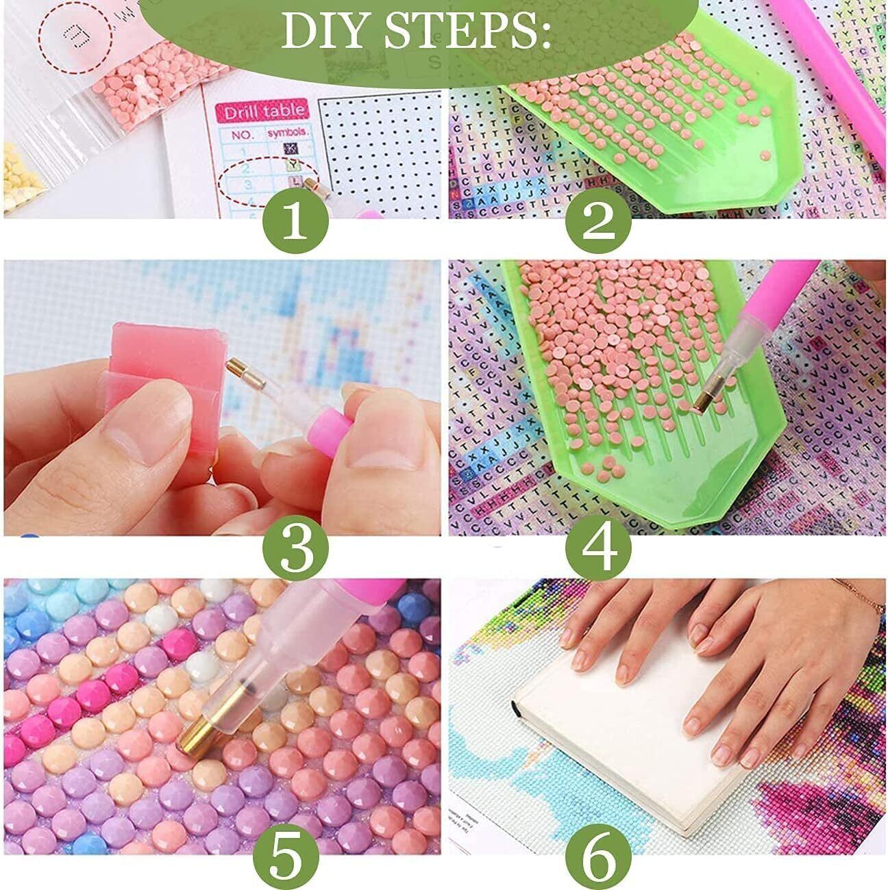 【作り方は簡単】ペン先をピンクのグルーを付けて台紙にビーズと同じ記号または英数字を貼り付けるだけでキラキラなダイヤモンドアートが仕上がります。クロスステッチ刺しゅうより気軽になり、集中力がUP、達成感もじゅうぶん味わっていただけます。