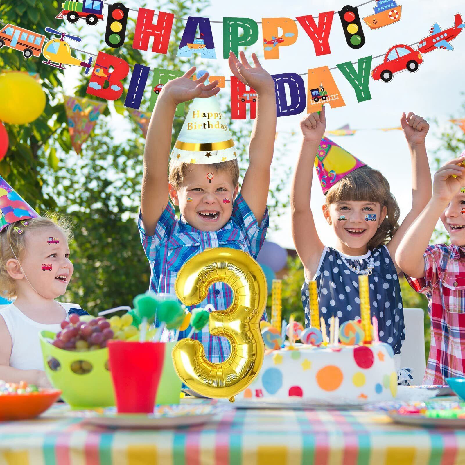 【在庫セール】誕生日 飾り付け シンプル パーティー セット 大きな 3D車バルーンセット Happy Birthdayバースデーバナー 交通バナー パトカーアルミ風船 スクールバスアルミ風船 (数字 3) | わくわくSHOP