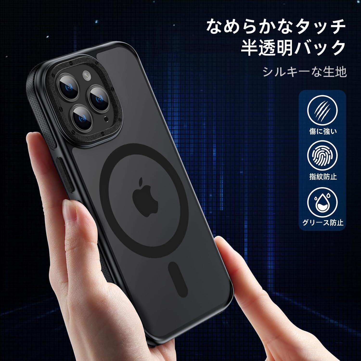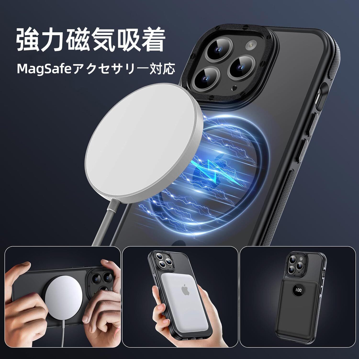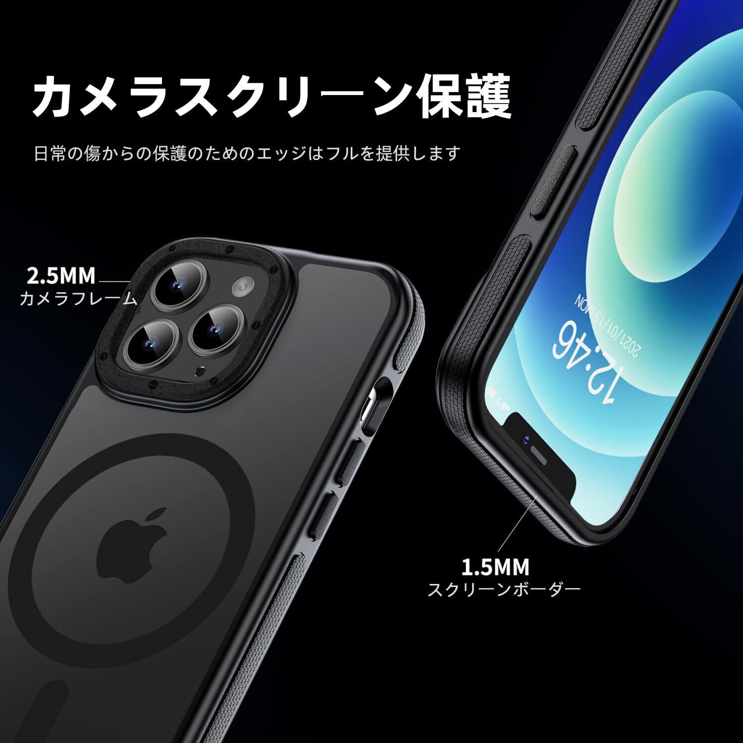 【数量限定】Cakorin iPhone 12/12 Pro強力磁気ケース[10インチ落下ミリタリー保護]MagSafe防振超薄ケース半透明マグネット耐衝撃マット感ワイヤレス充電対応,ブラック | わくわくSHOP