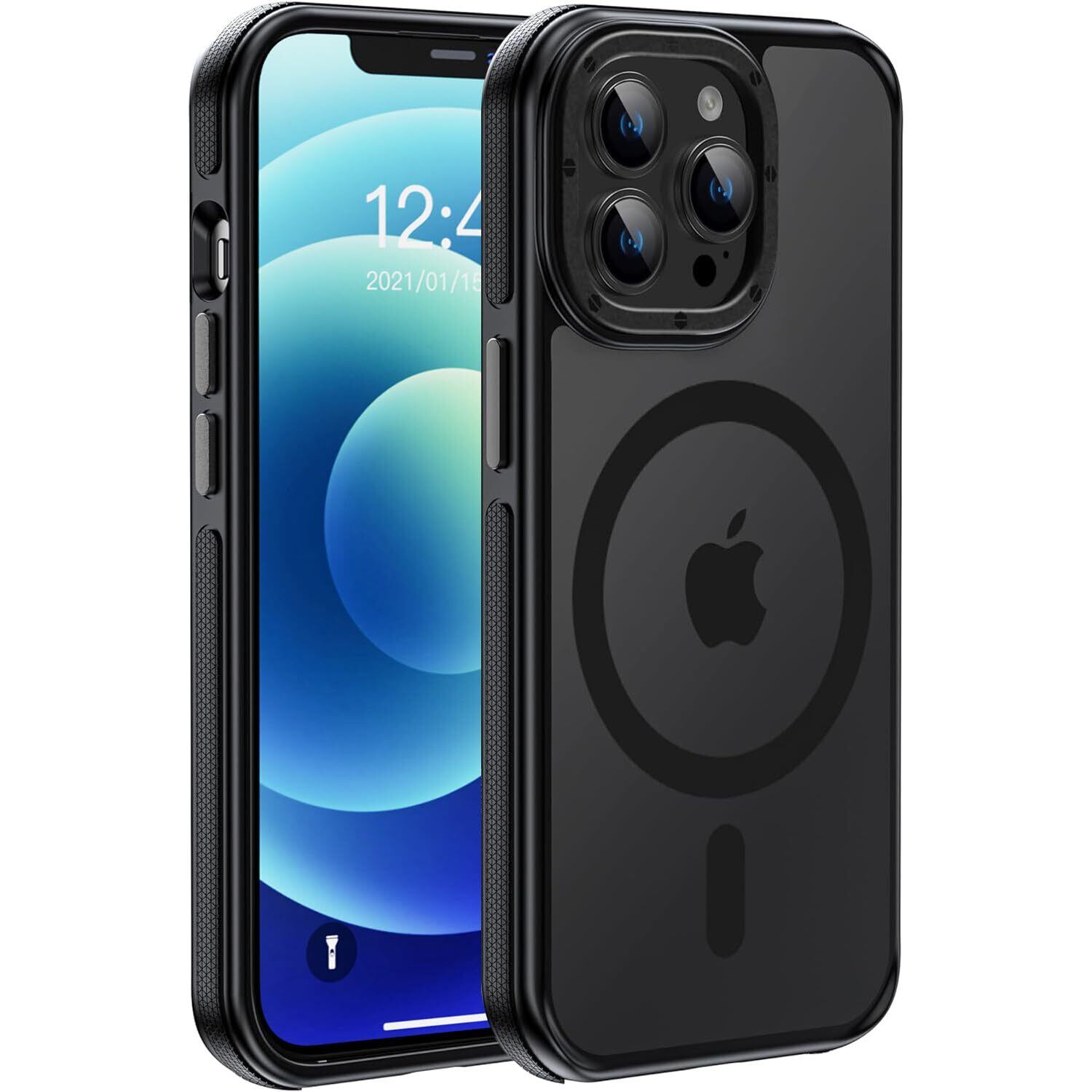 Cakorin iPhone 12/12 Pro強力磁気ケース[10インチ落下ミリタリー保護]MagSafe防振超薄ケース半透明マグネット耐衝撃マット感ワイヤレス充電対応,ブラック
